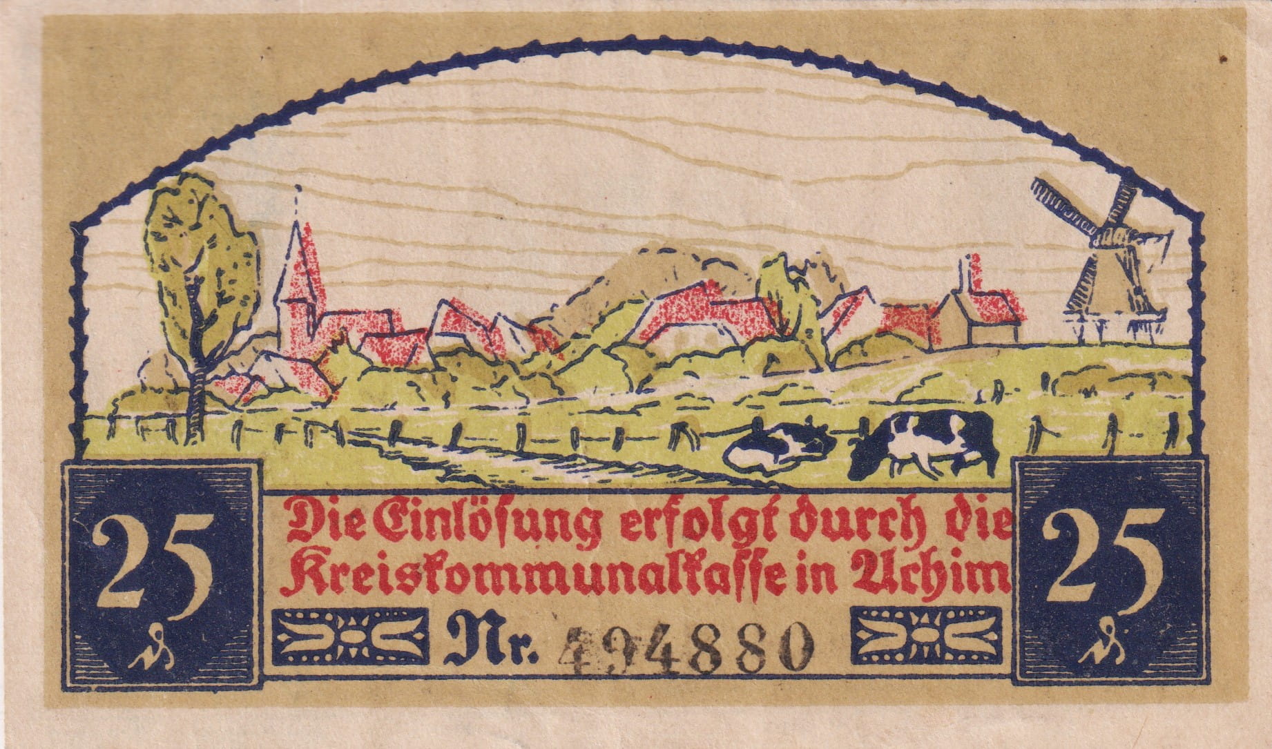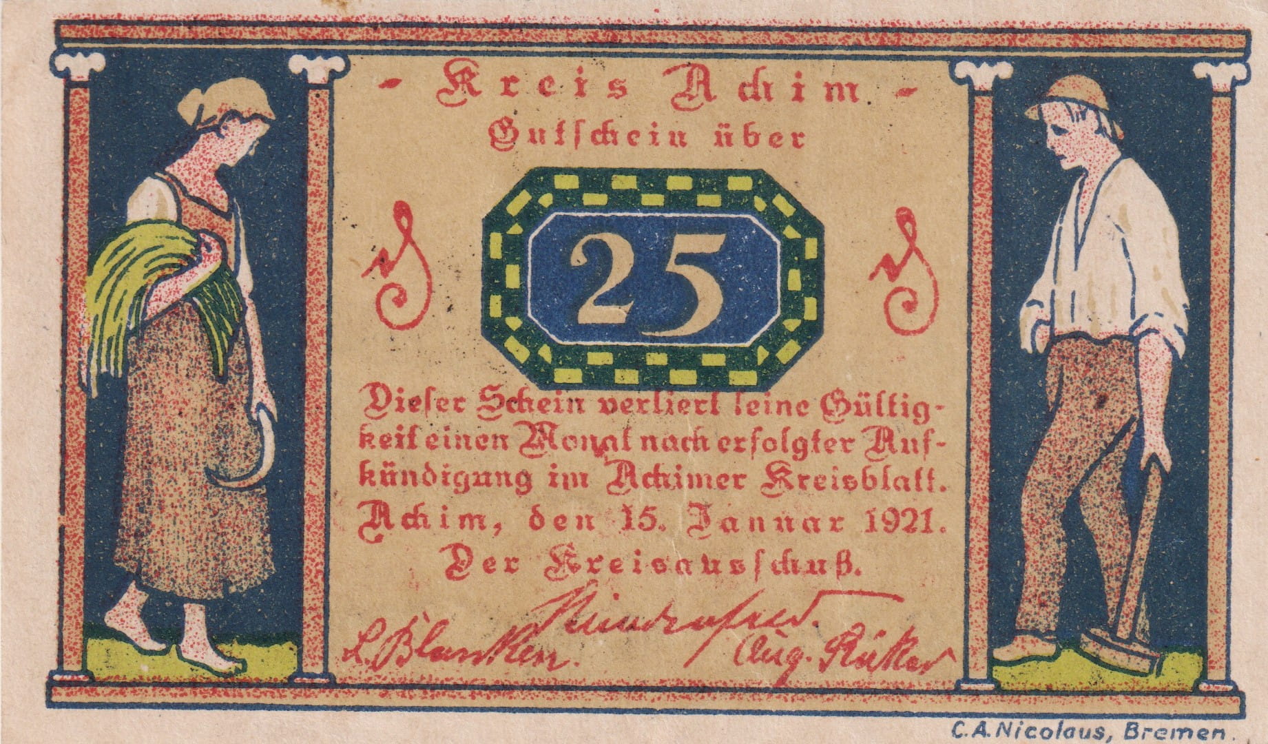 Achim 25 Pf G-2 15.1.1921 AU/UNC