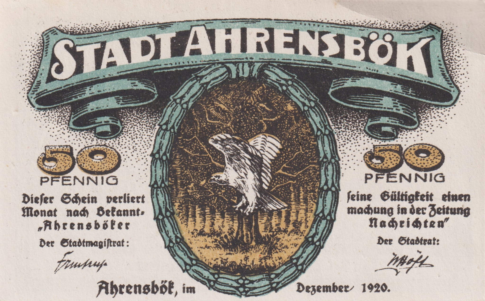 Ahrensbok 50 Pf G-6.1 12.1920 XF