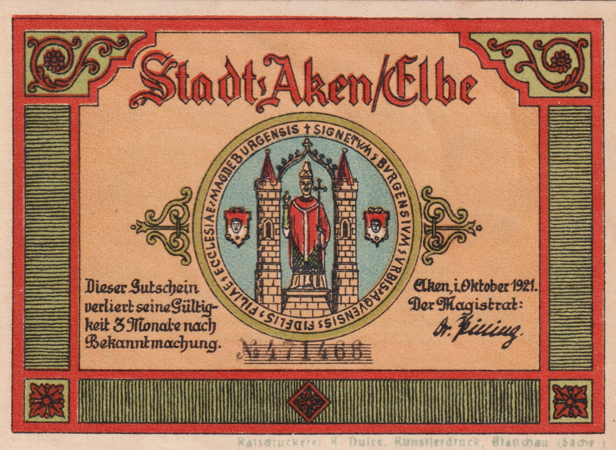 Aken 50 Pf G-8 10.1921 AU/UNC 3. Fruher warst