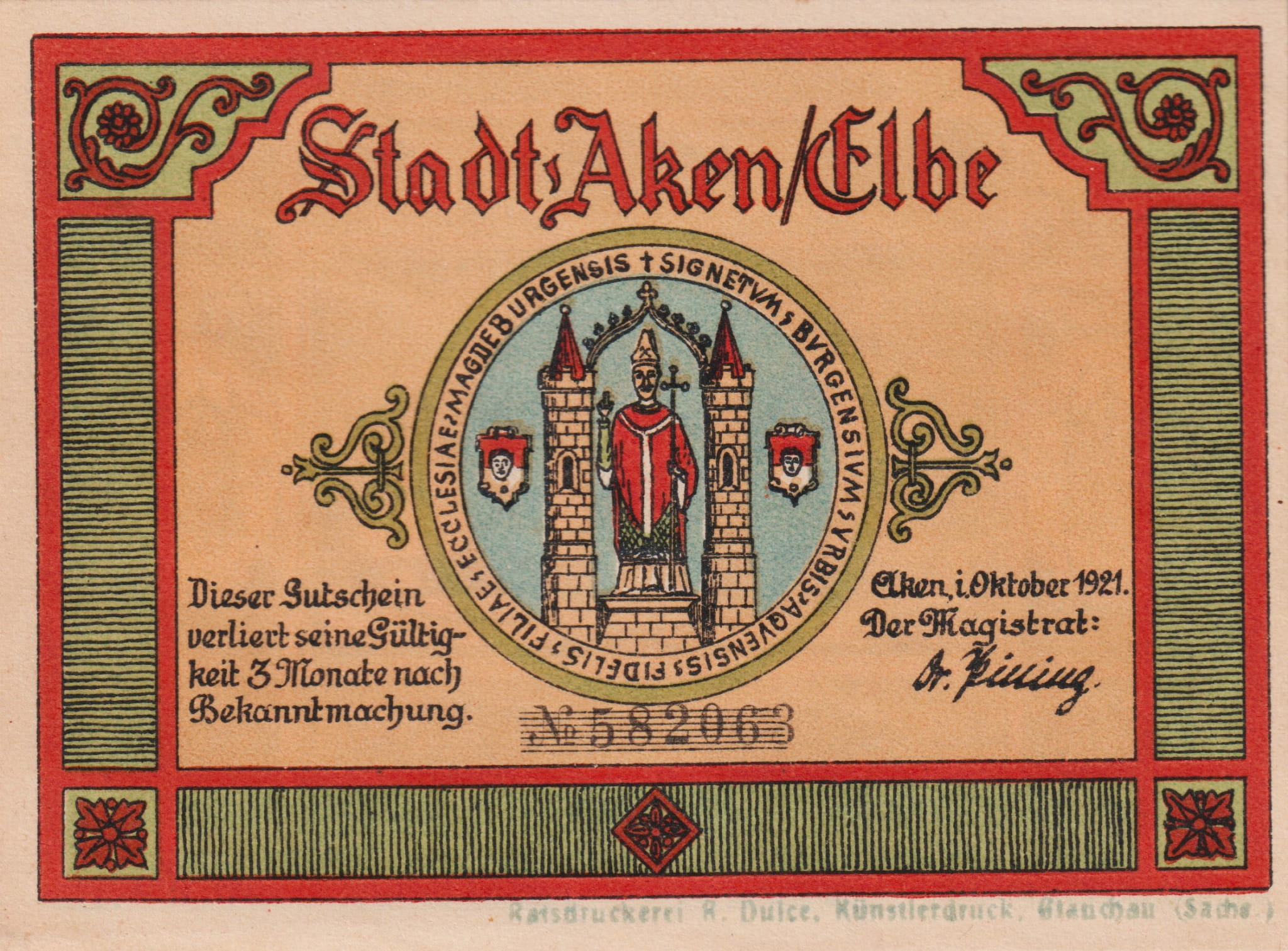 Aken 75 Pf G-8 10.1921 AU/UNC