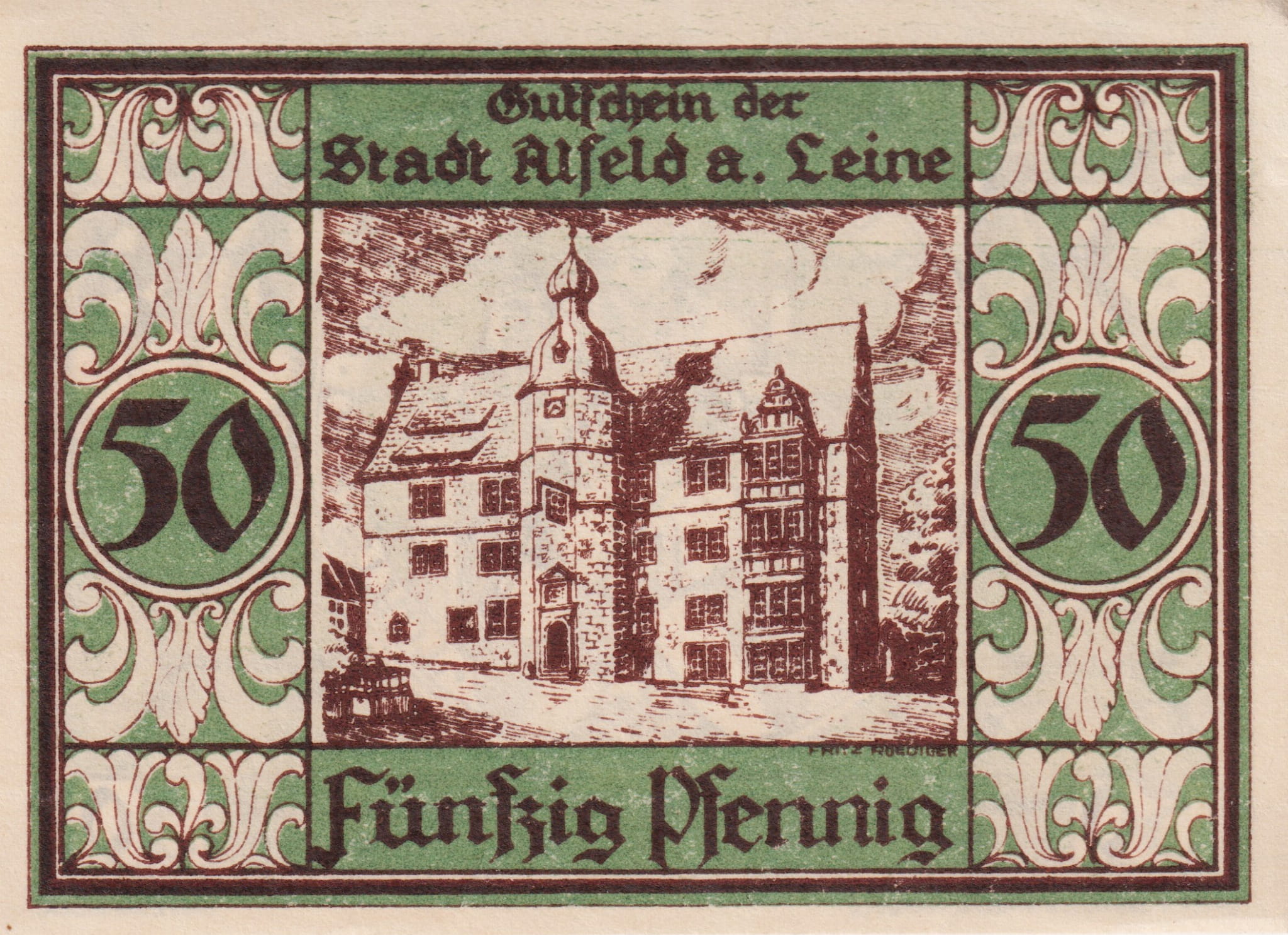 Alfeld 50 Pf G-11.1 1.7.1921 XF