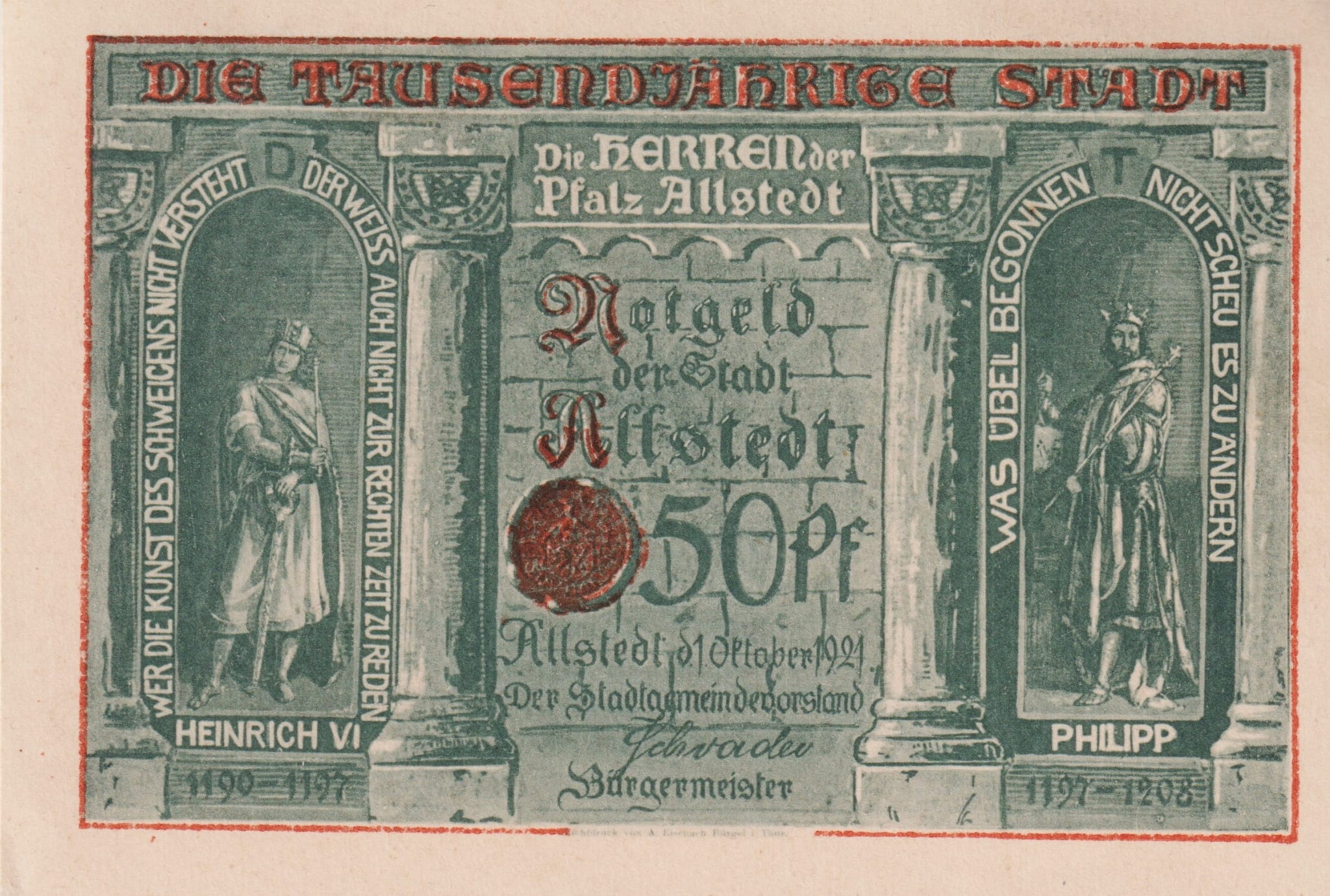 Allstedt 50 Pf G-15.1.6 1.10.1921 AU/UNC Rohnetor