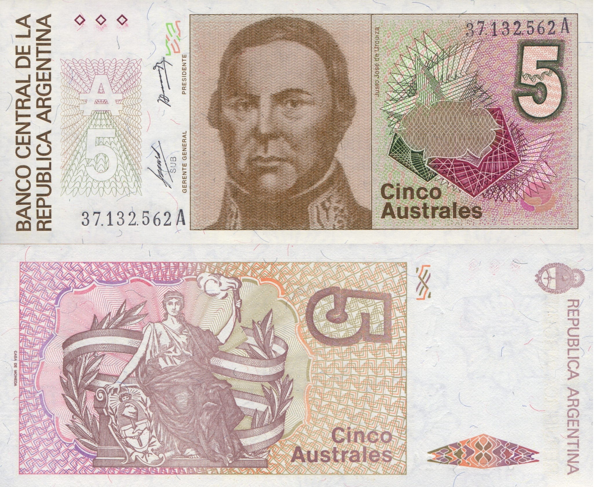 Argentyna 5 Australes P-324a 1985-89 stan I UNC