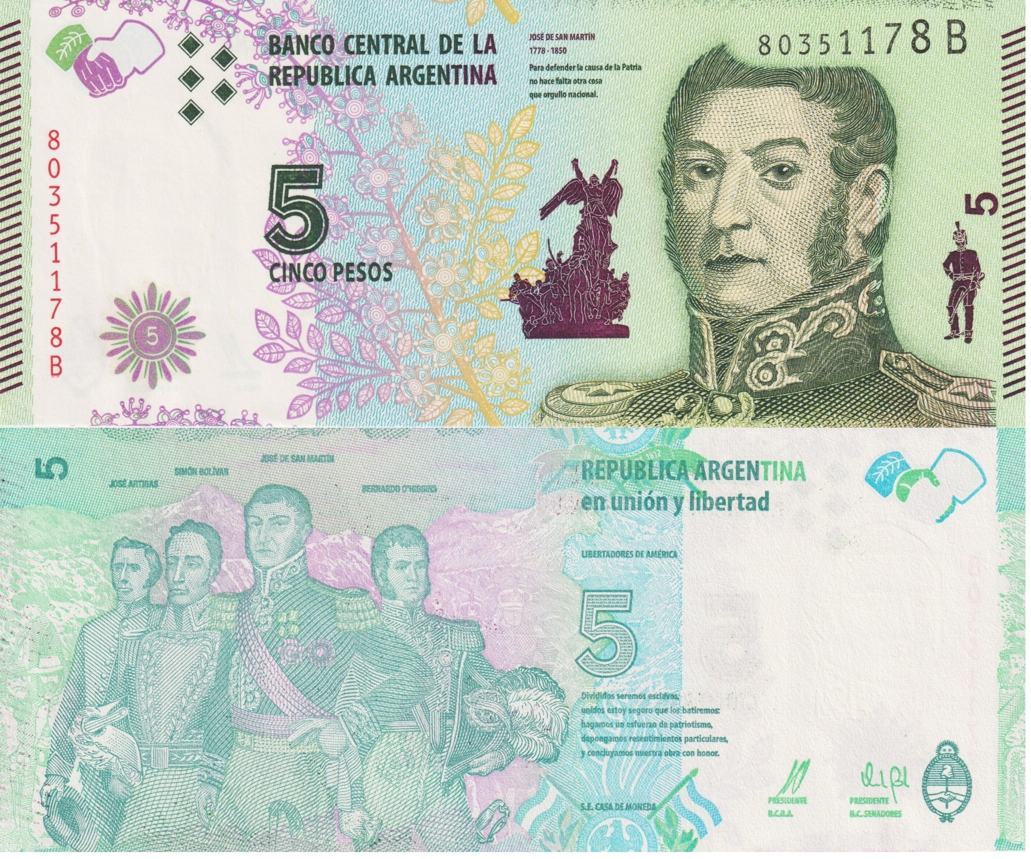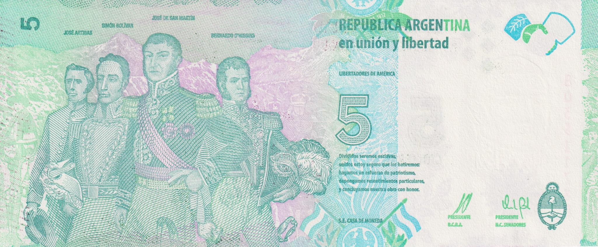 Argentyna 5 Pesos P-359 2015 UNC