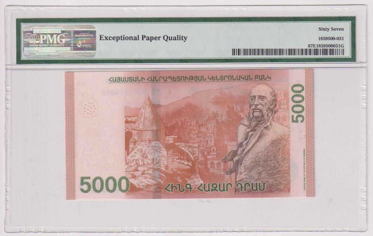 Armenia 5000 dram P-63 2018 PMG67