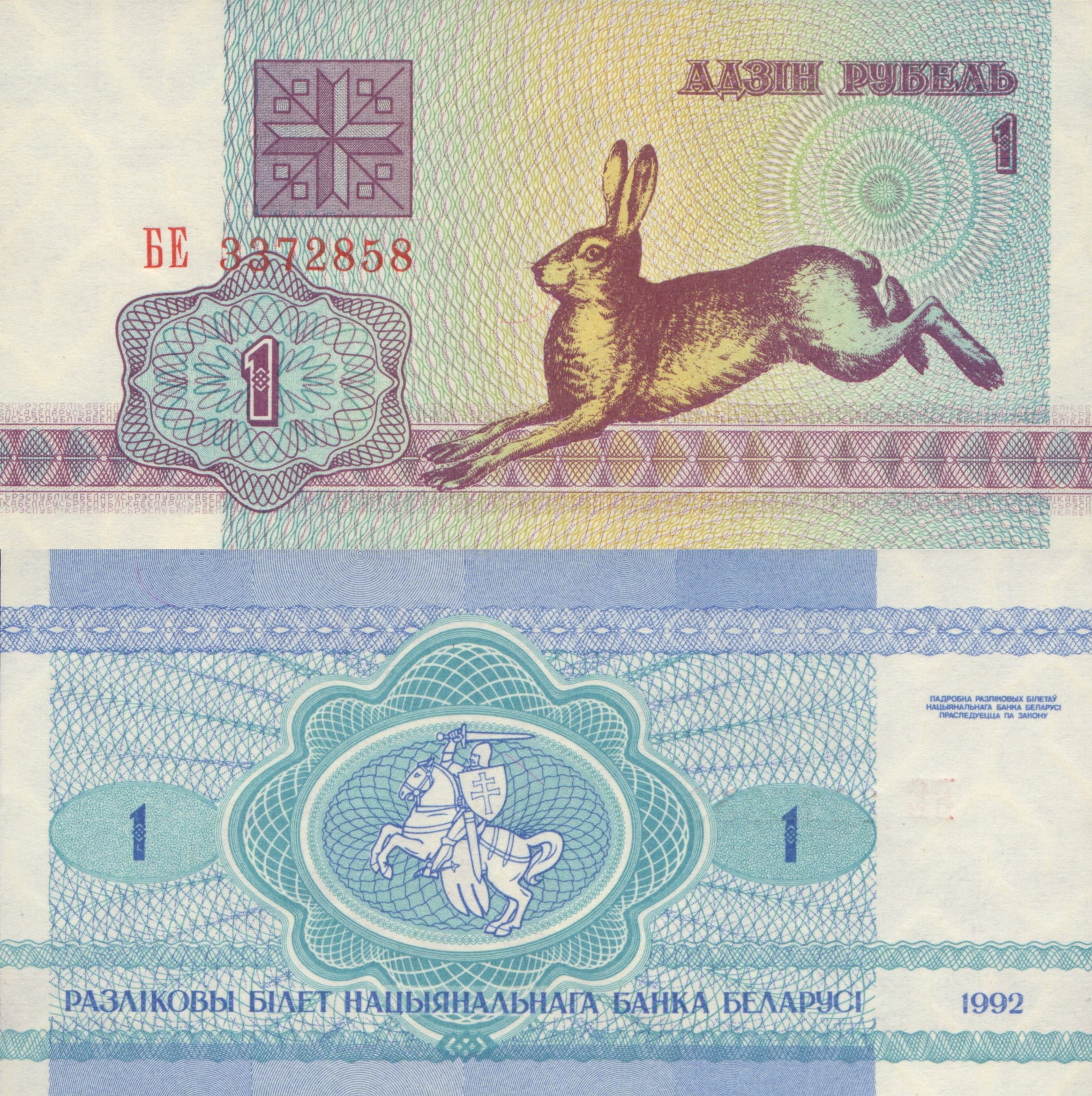 Białoruś 1 Rubel P-2 1992 Stan I Unc