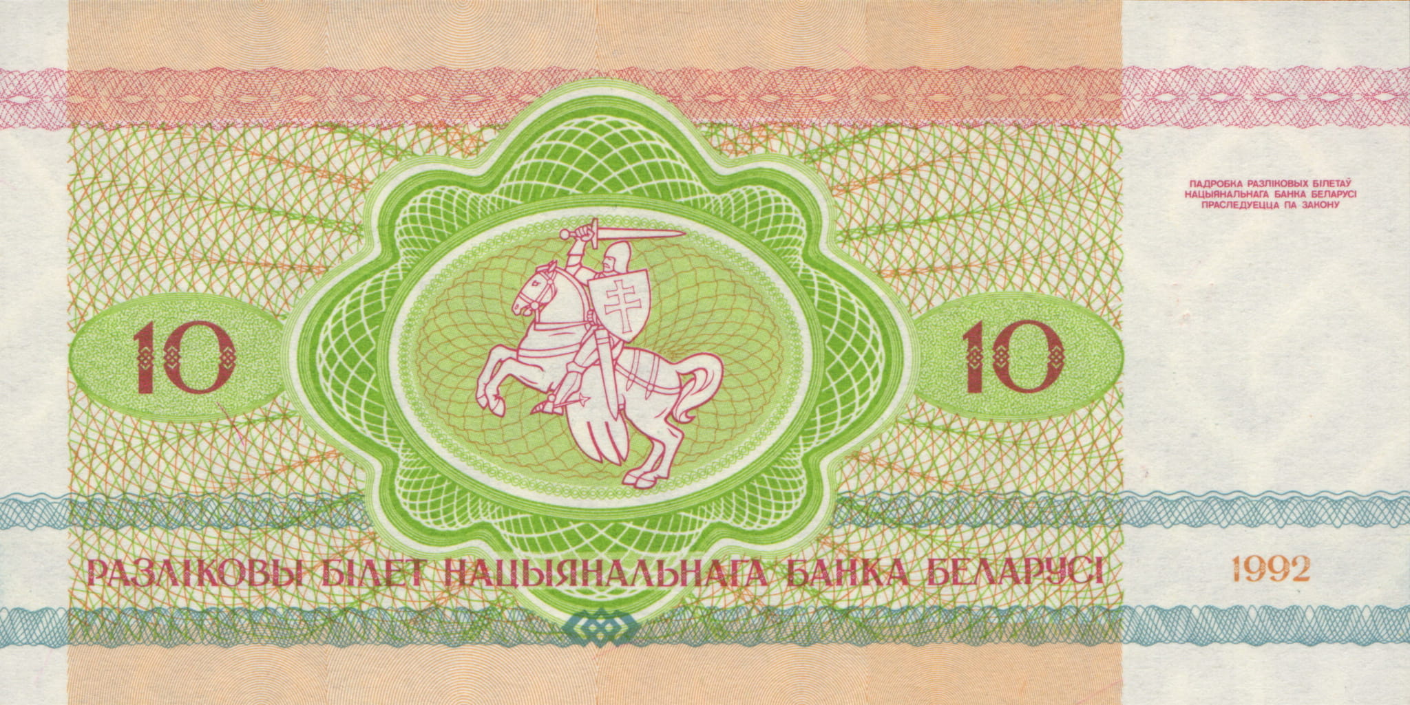 Białoruś 10 Rubel P-5 1992 Stan I Unc