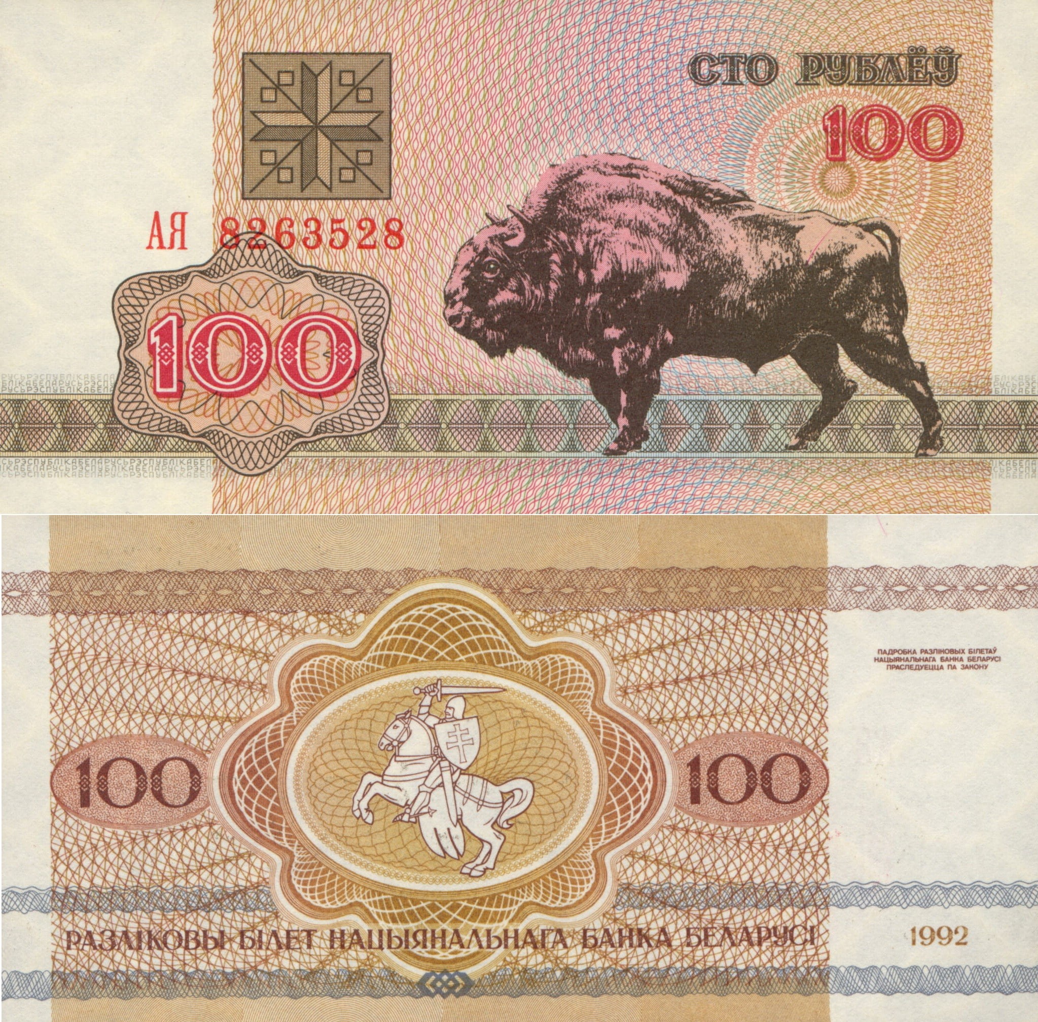 Białoruś 100 Rubel P-8 1992 Stan I Unc