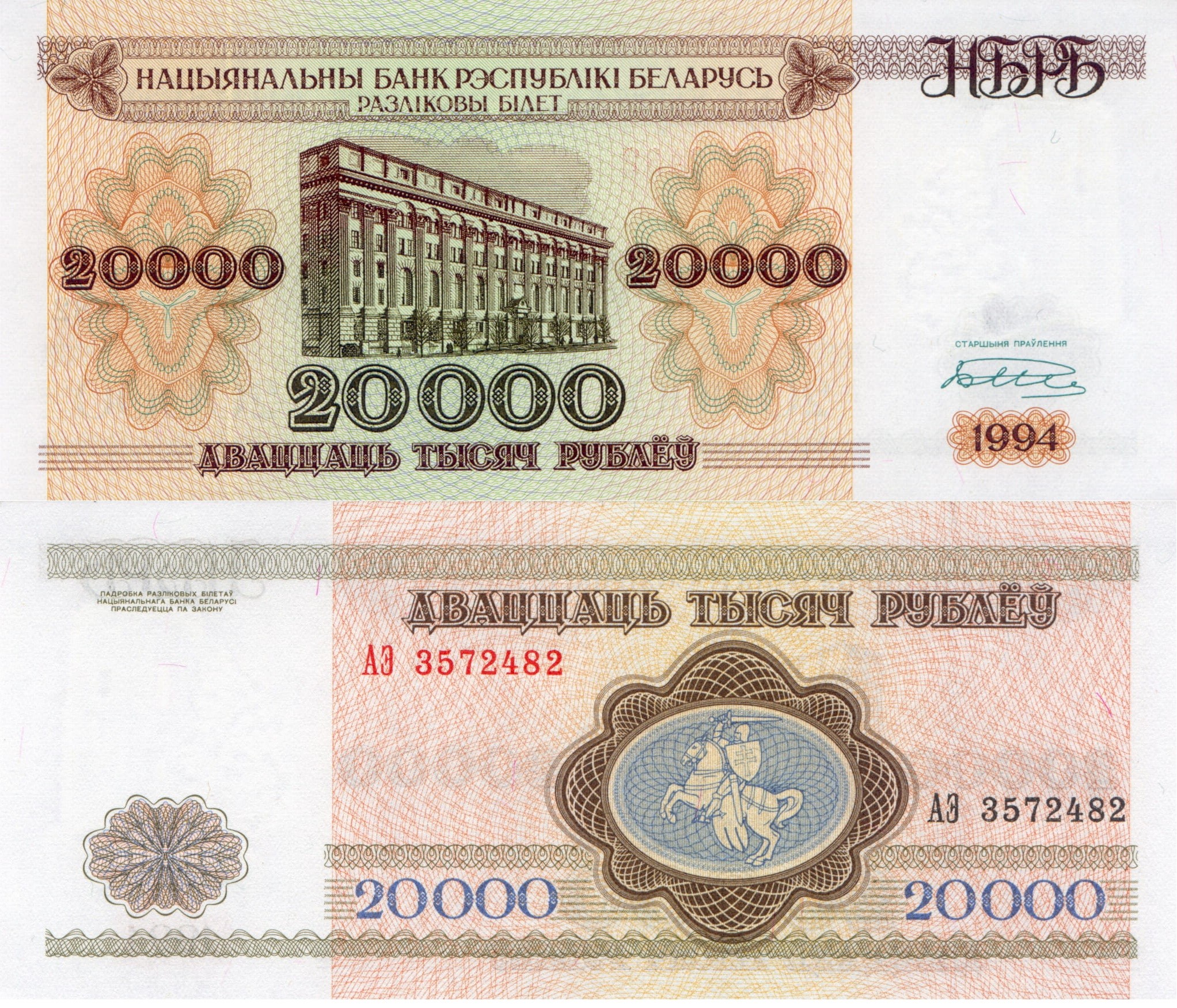 Białoruś 20 000 Rubel P-13 1994 Stan I Unc