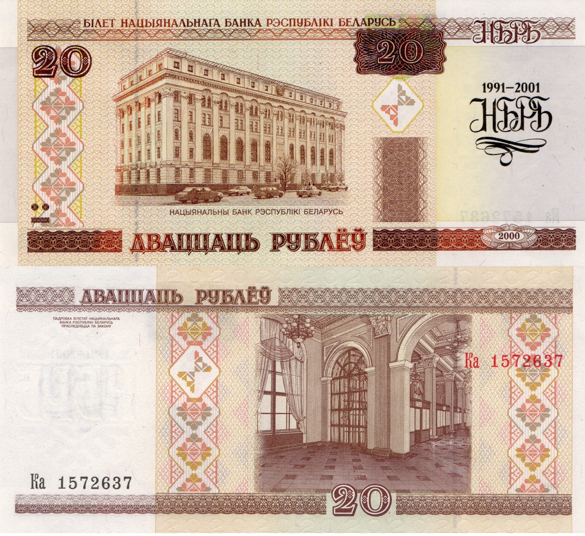 Białoruś 20 Rubli P-33 2000 Stan I Unc + folder
