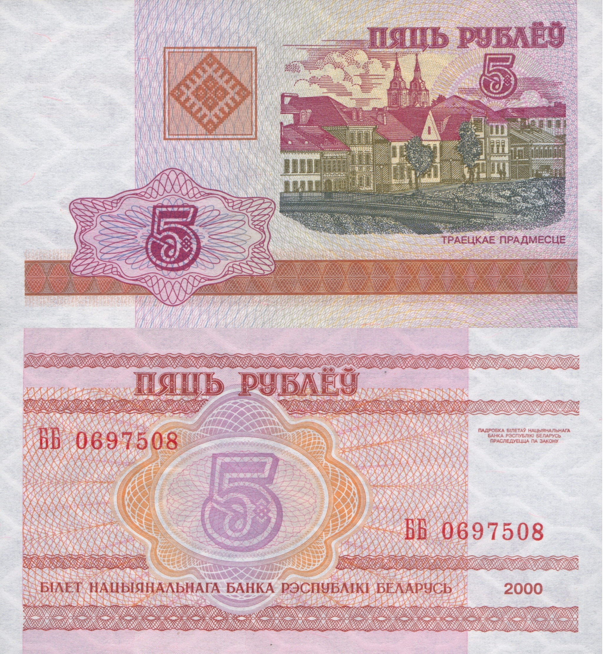 Białoruś 5 Rubli P-22 2000 Stan I Unc