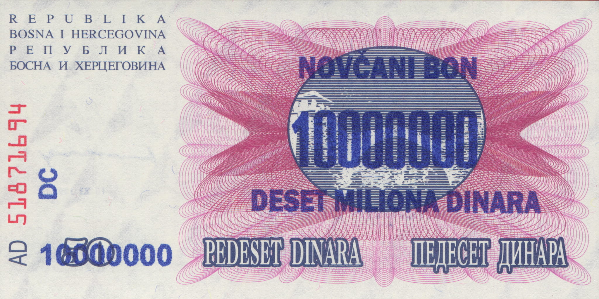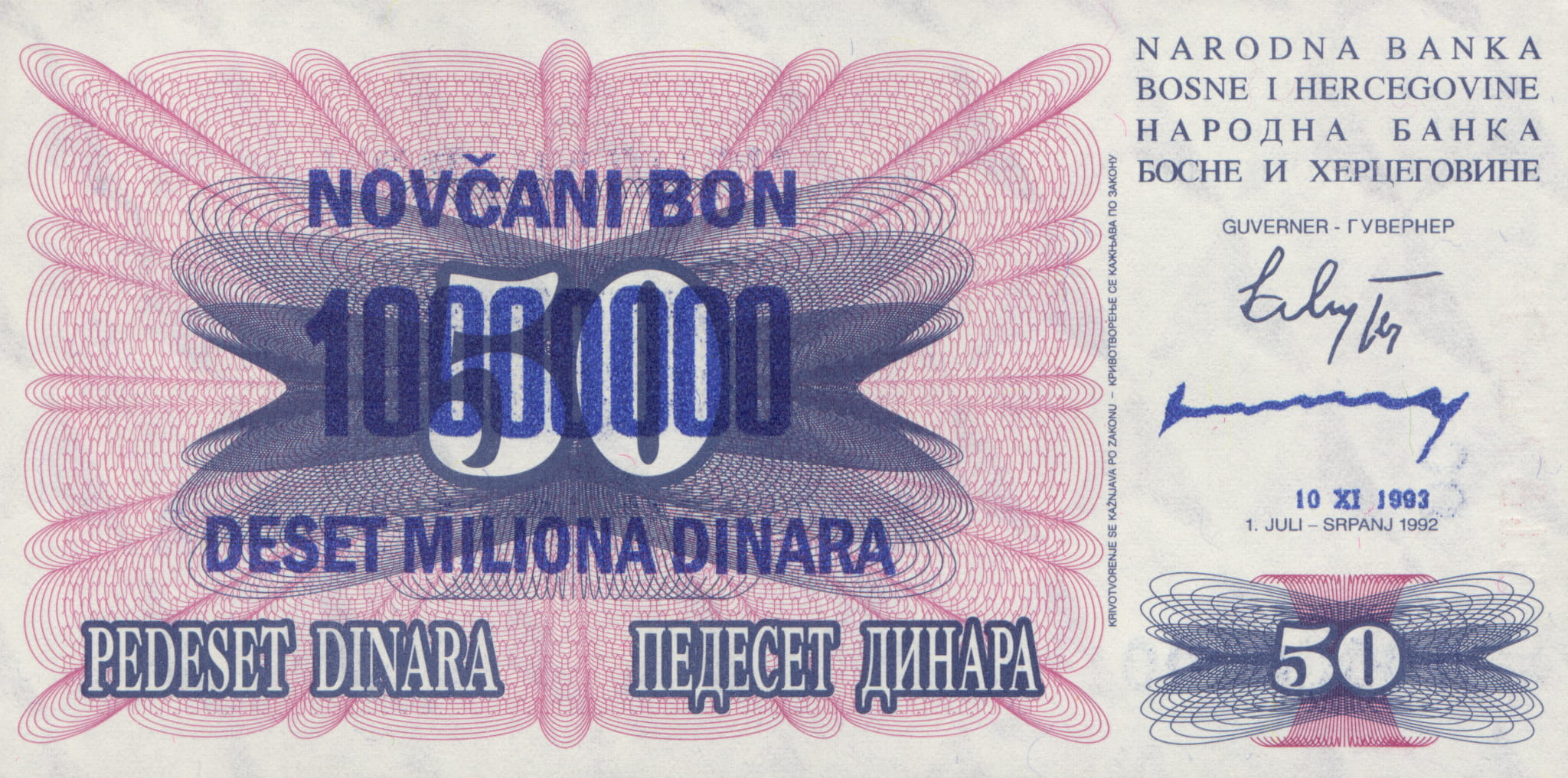 Bośnia i Hercegowina 10 000 000 Dinara P-36 10.XI.1993 UNC