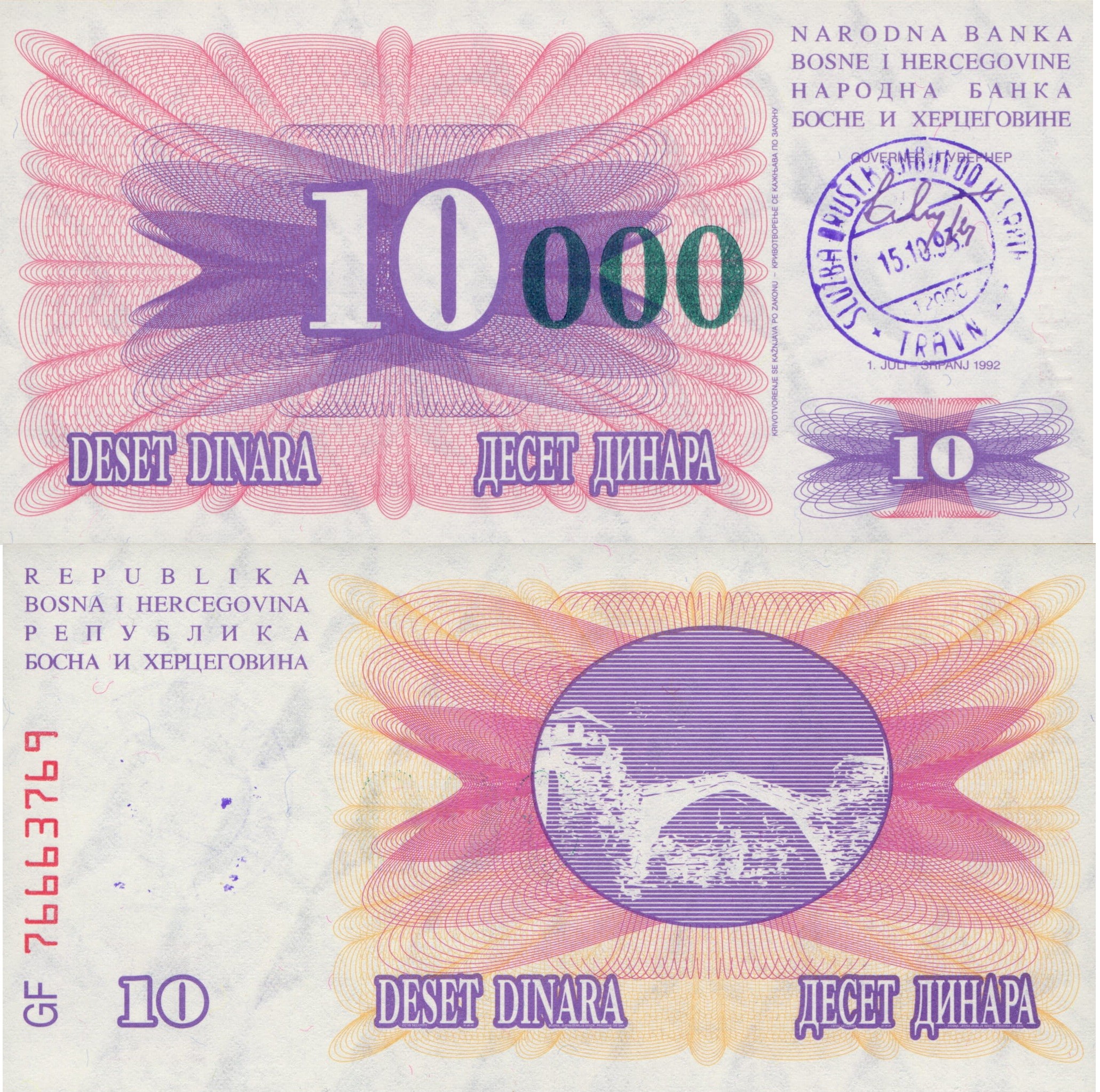 Bosnia and Herzegovina 10 000 Dinara P-53a 1993 UNC