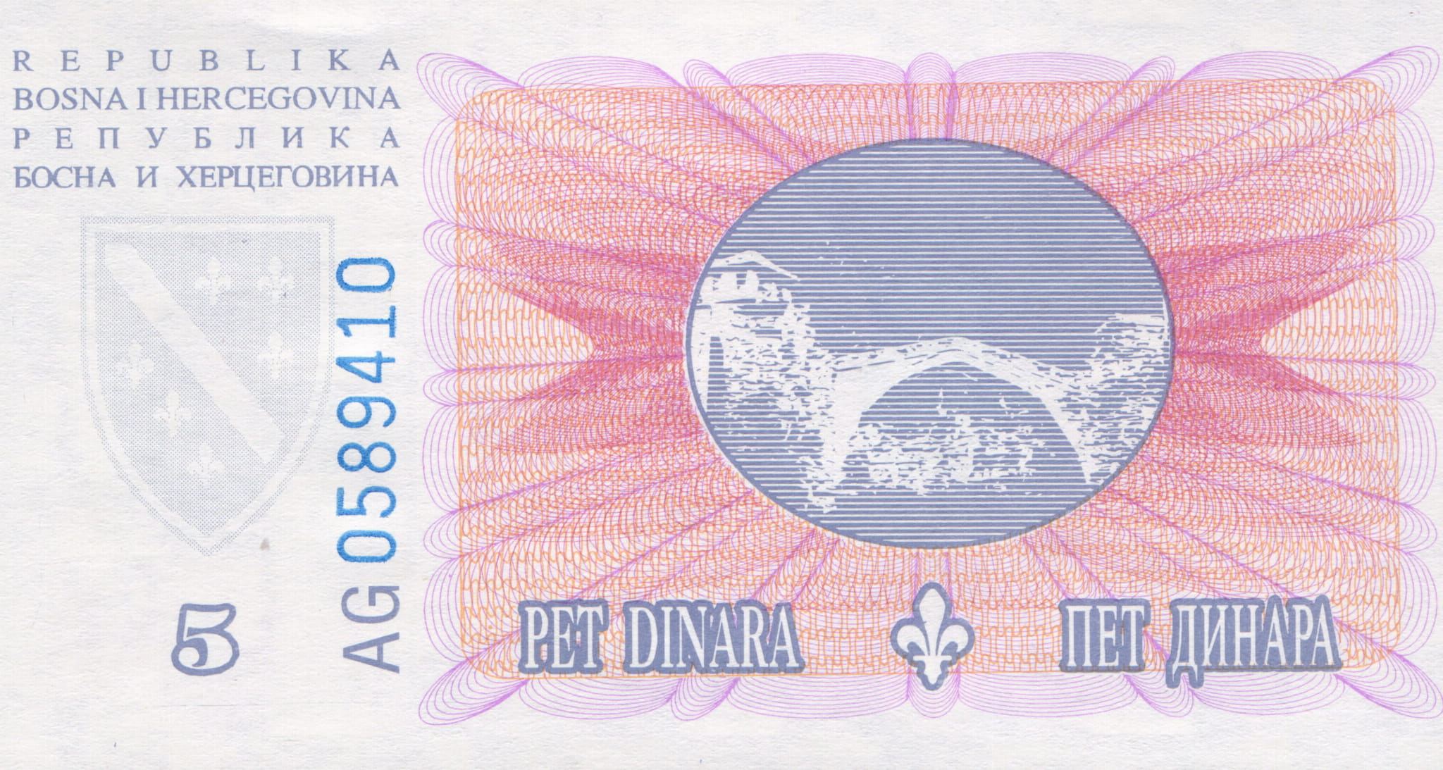Bośnia i Hercegowina 5 Dinara P-40 1994 UNC