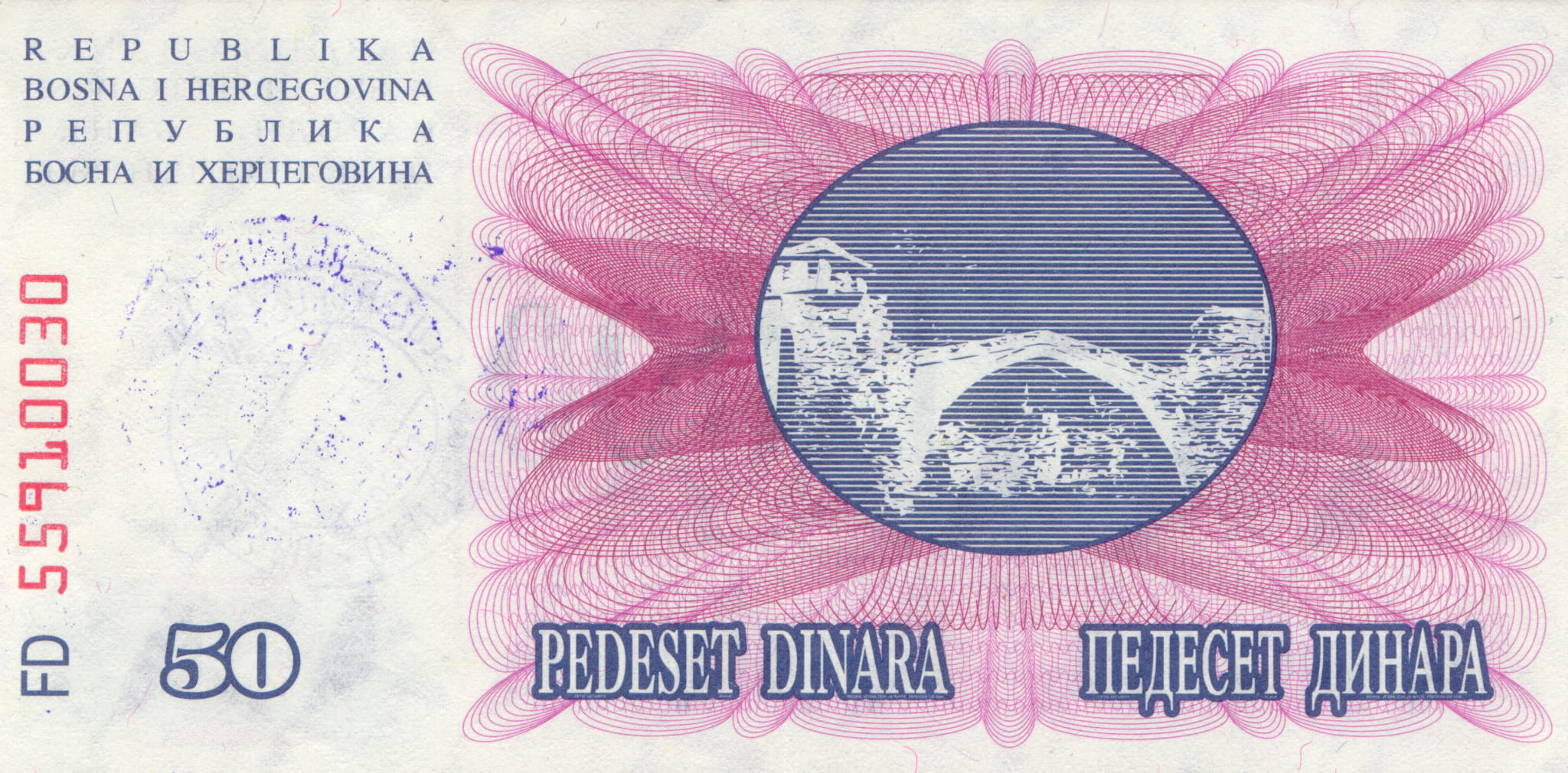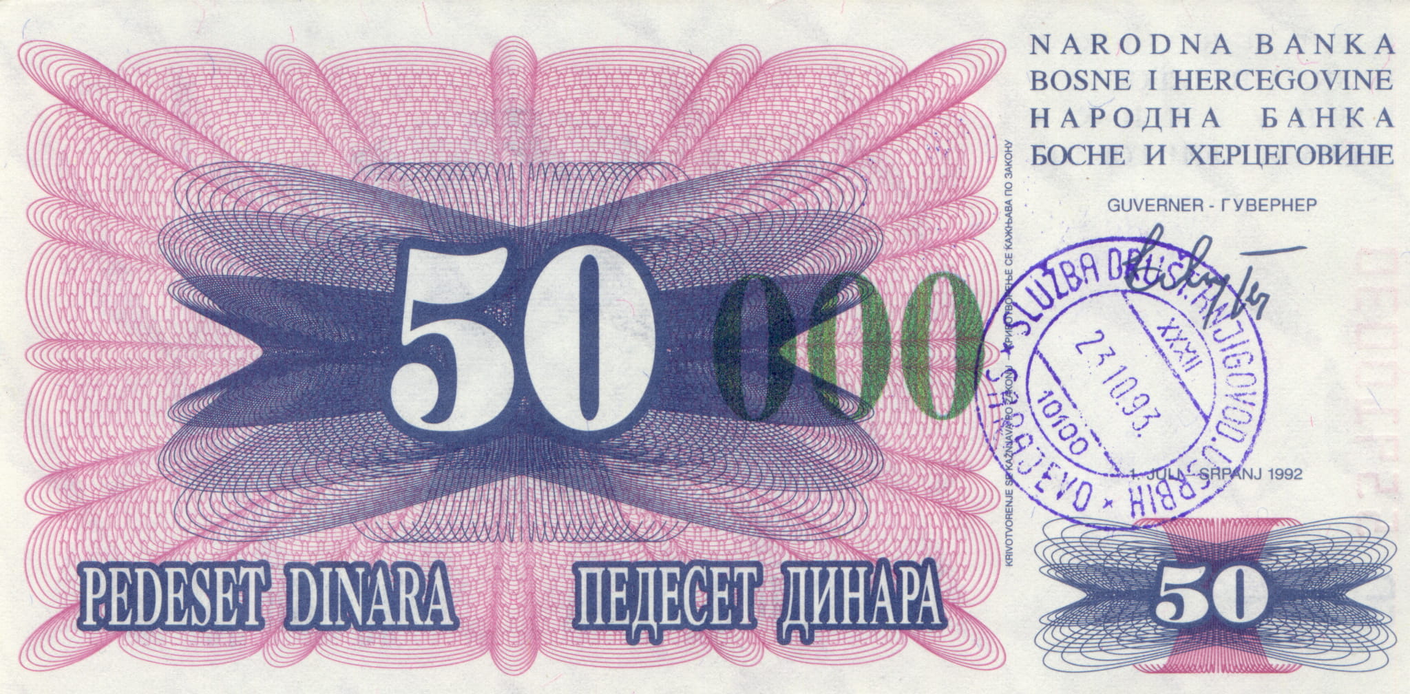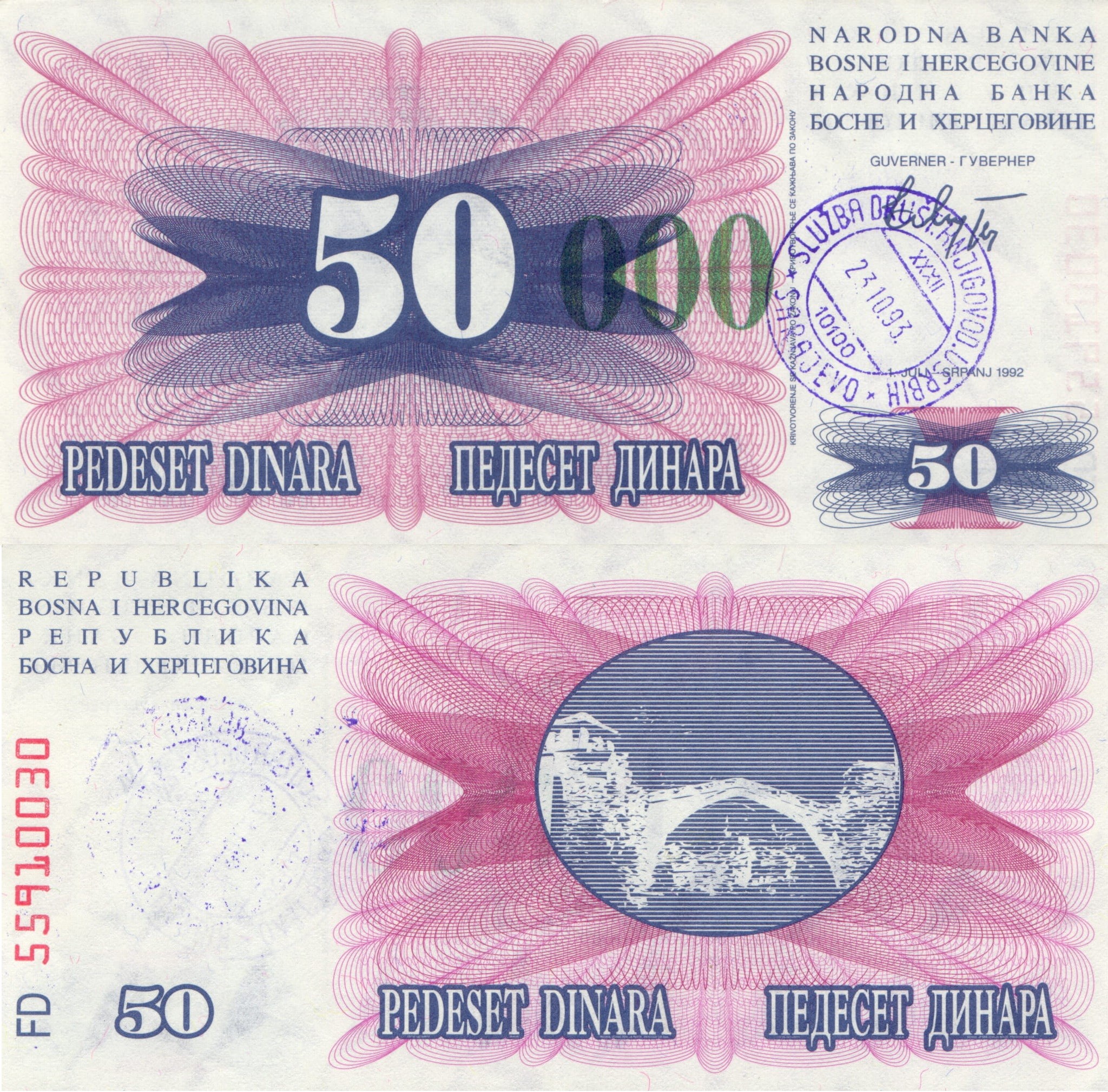 Bosnia and Herzegovina 50 000 Dinara P-55e 1993 UNC