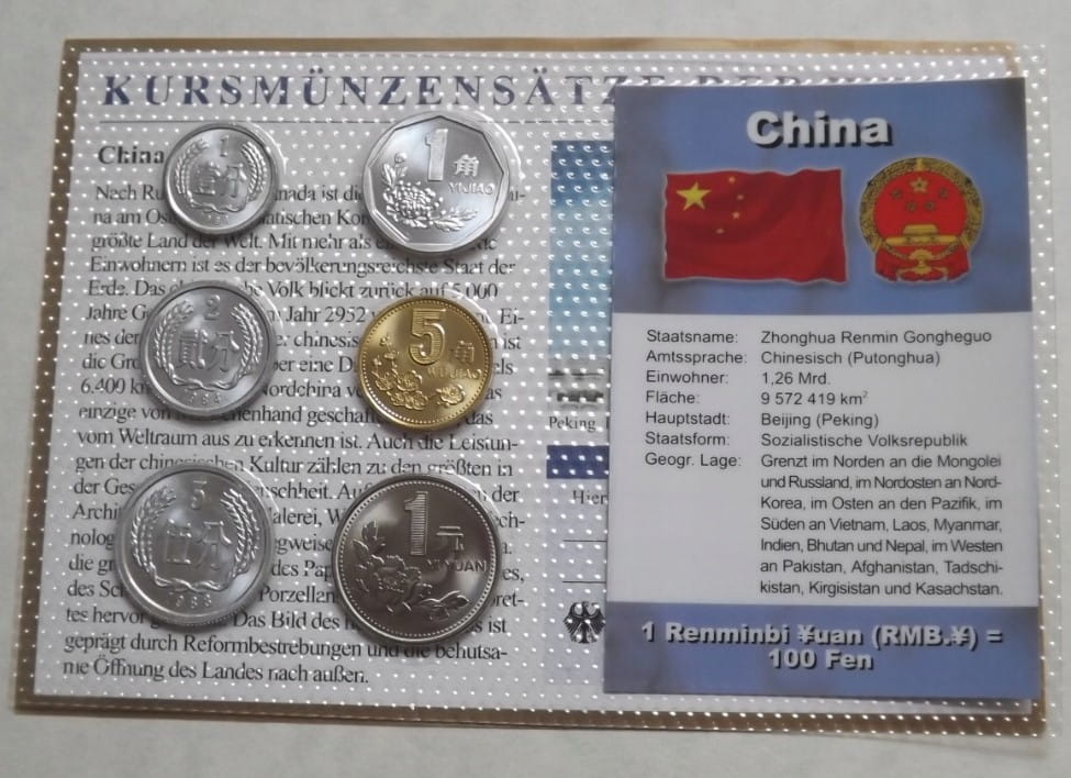 Chiny 1 Fen -1Yuan 6 pcs 1983-2001 UNC