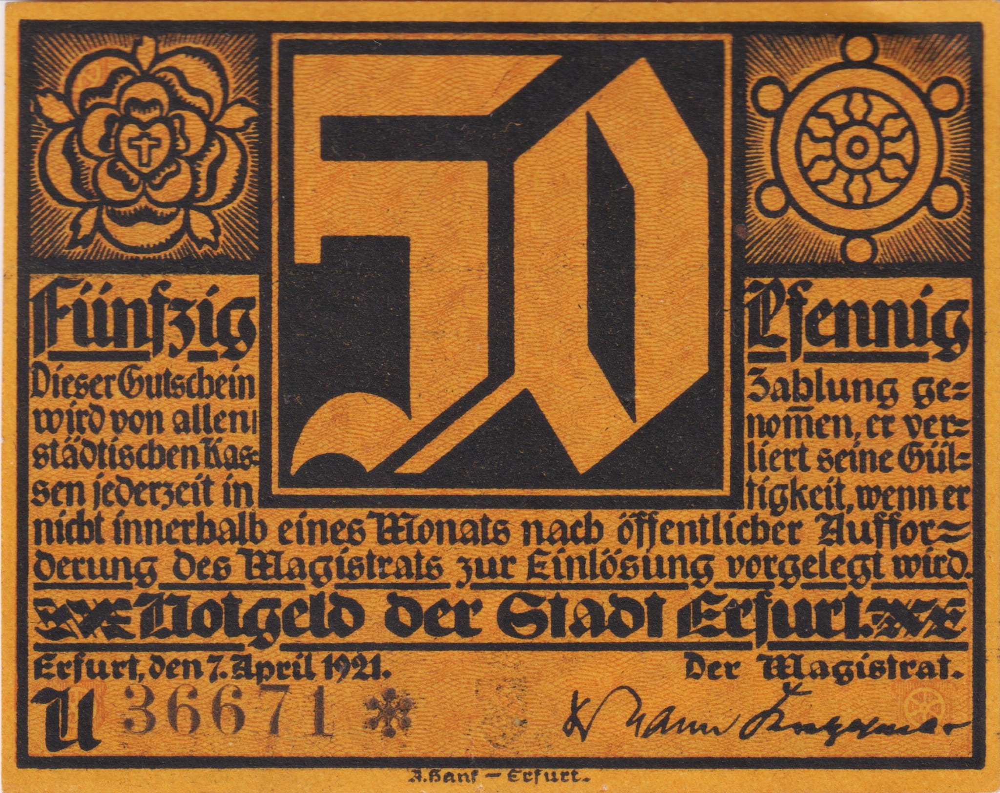 Erfurt 50 Pf G-344.3 7.4.1921 aUNC U orange