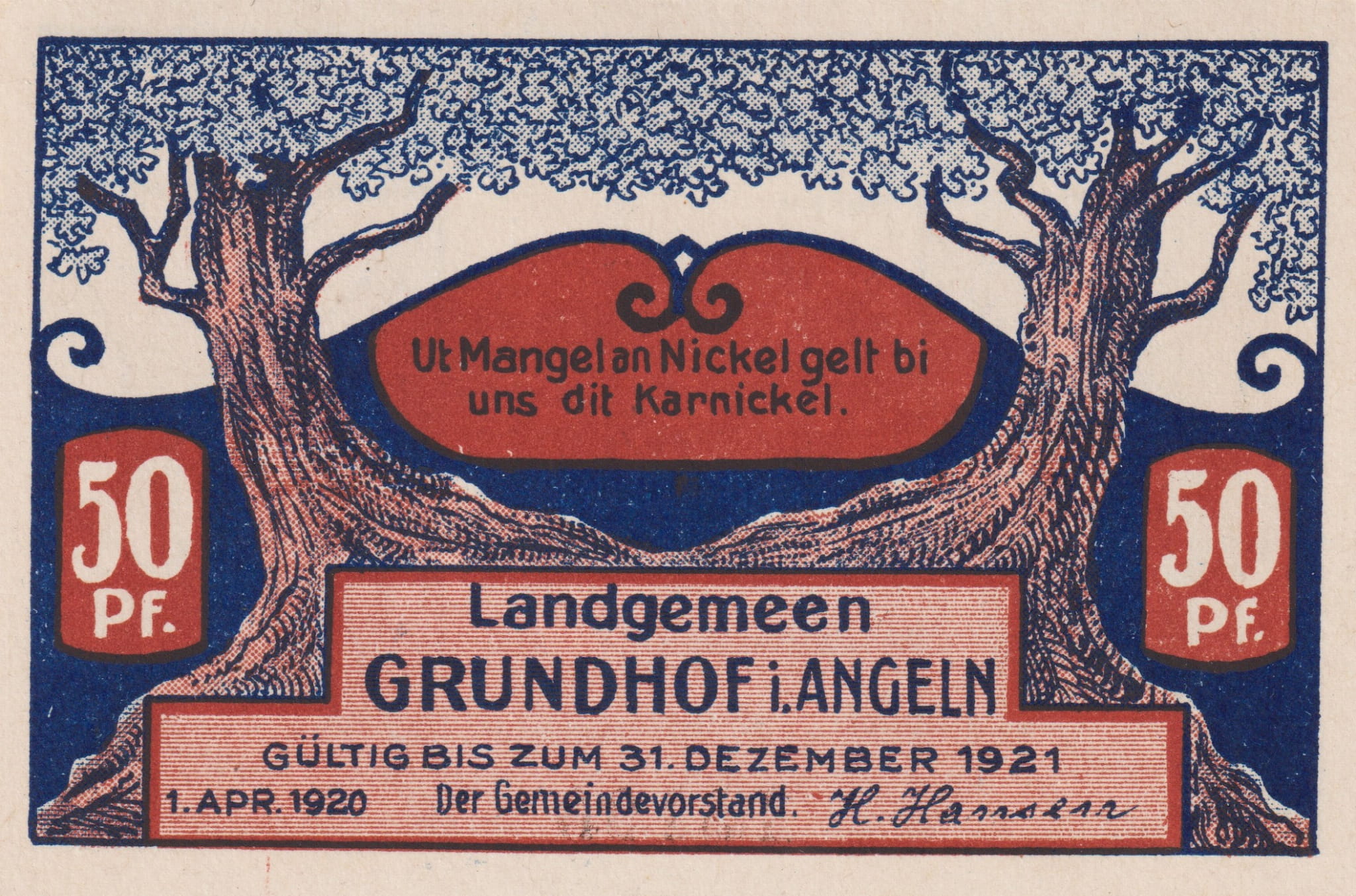 Grundhof in Angeln 50 Pf G-493.1 1.4.1920-31.12.1921 aUNC 3. Hafen