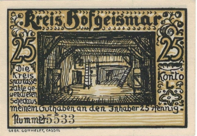 Hofgeismar 25 Pf G-619.3 1922 UNC