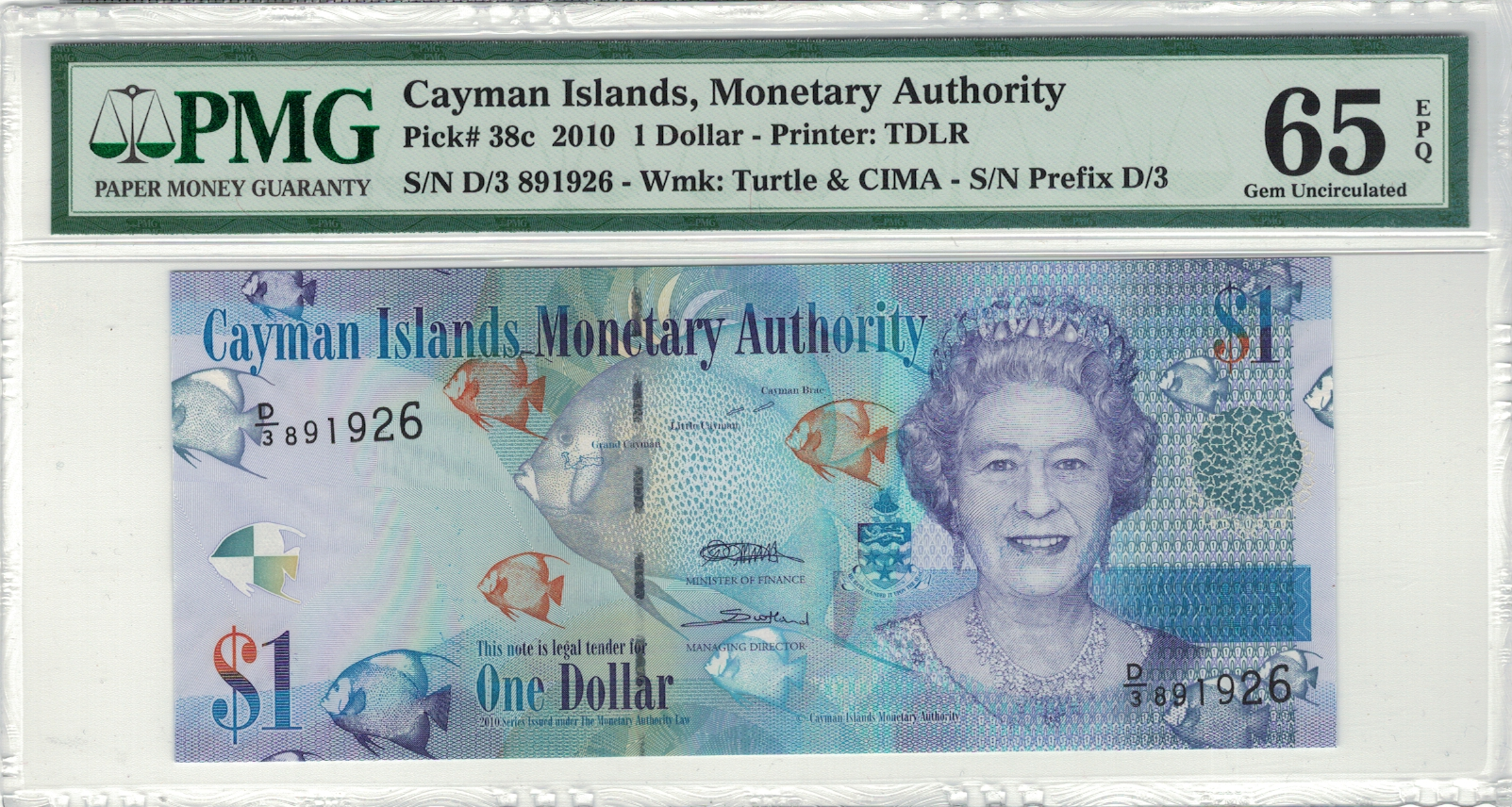 Kajmany 1 Dollar P-38c 2010 stan PMG 65