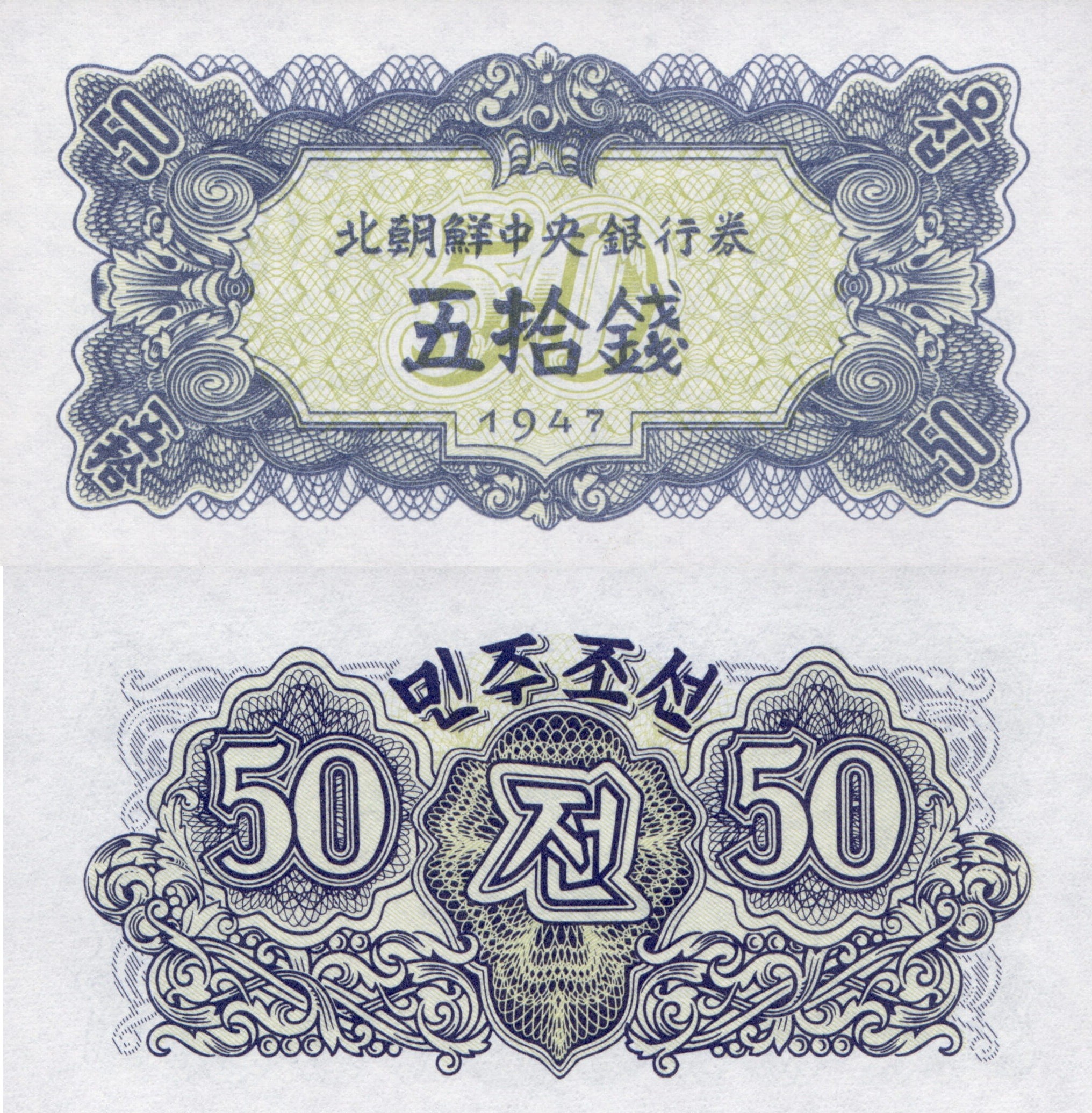 Korea Północna 50 Chon P-7 1947 Stan I UNC