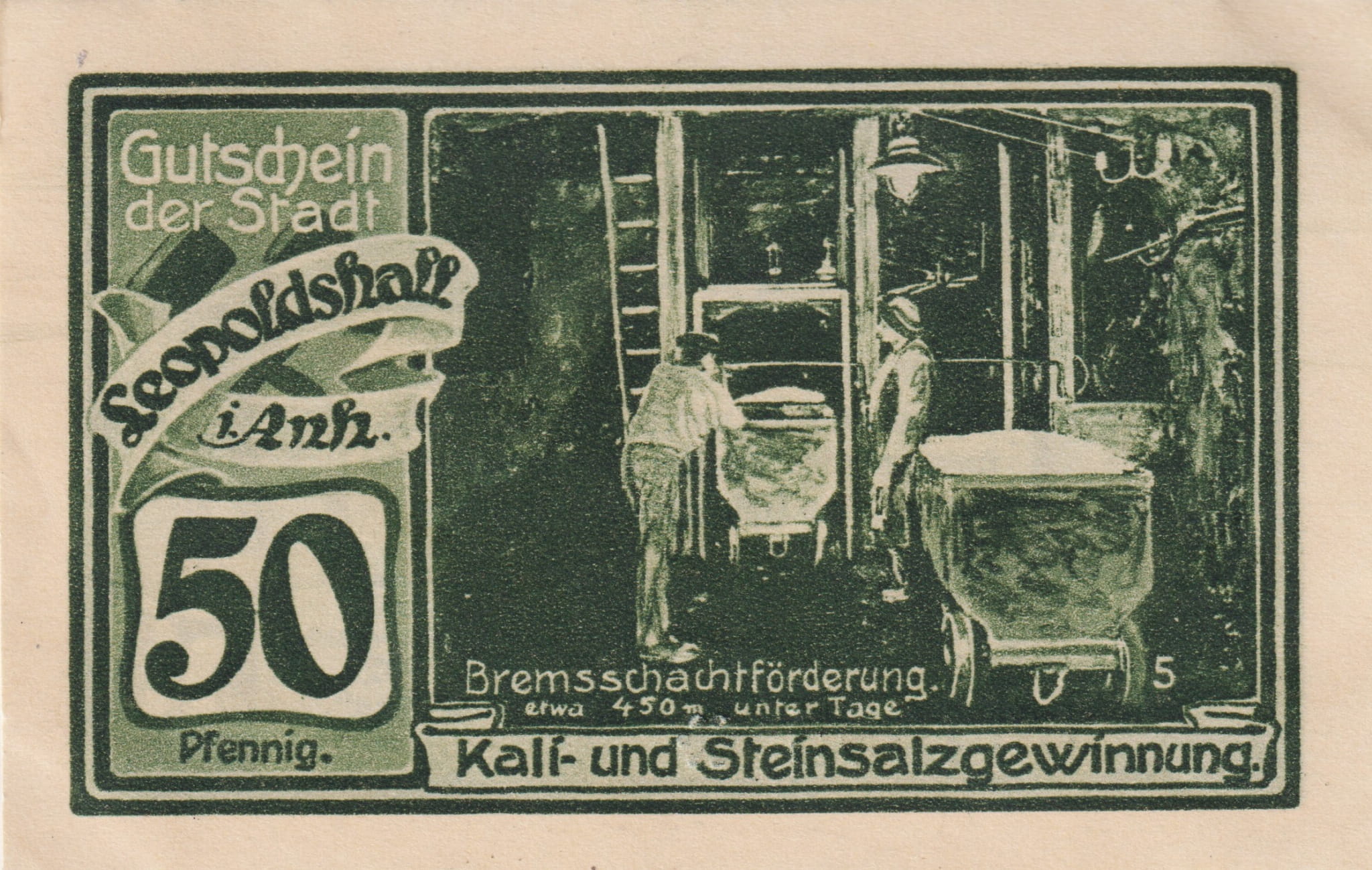 Leopoldshall 50 Pf G-794.2a 25.7.1921 XF Bild 5: Bremsschachtforderung