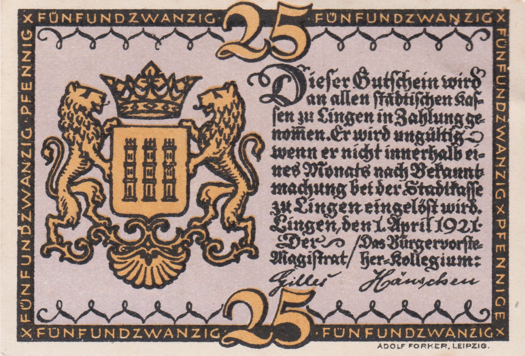 Lingen 25 Pf G-803.2b 1.4.1921 aUNC