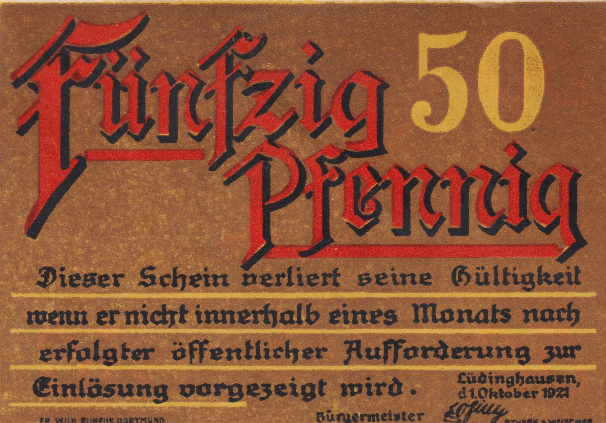 Ludinghausen 50 Pf G-837.1 1.10.1921 AU/UNC
