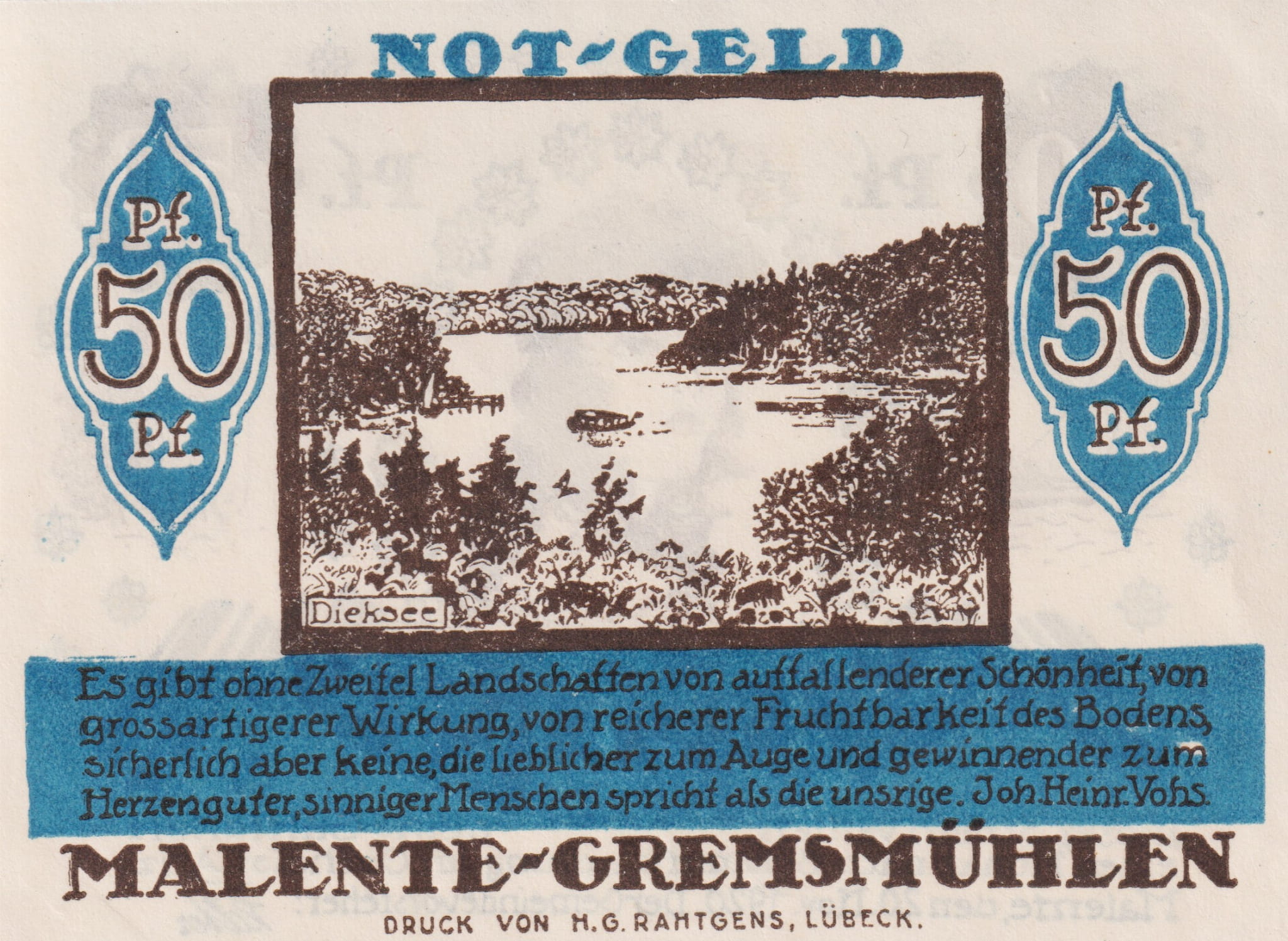 Malente-Gremsmuhlen 50 Pf G-864.1 20.11.1920 AU/UNC