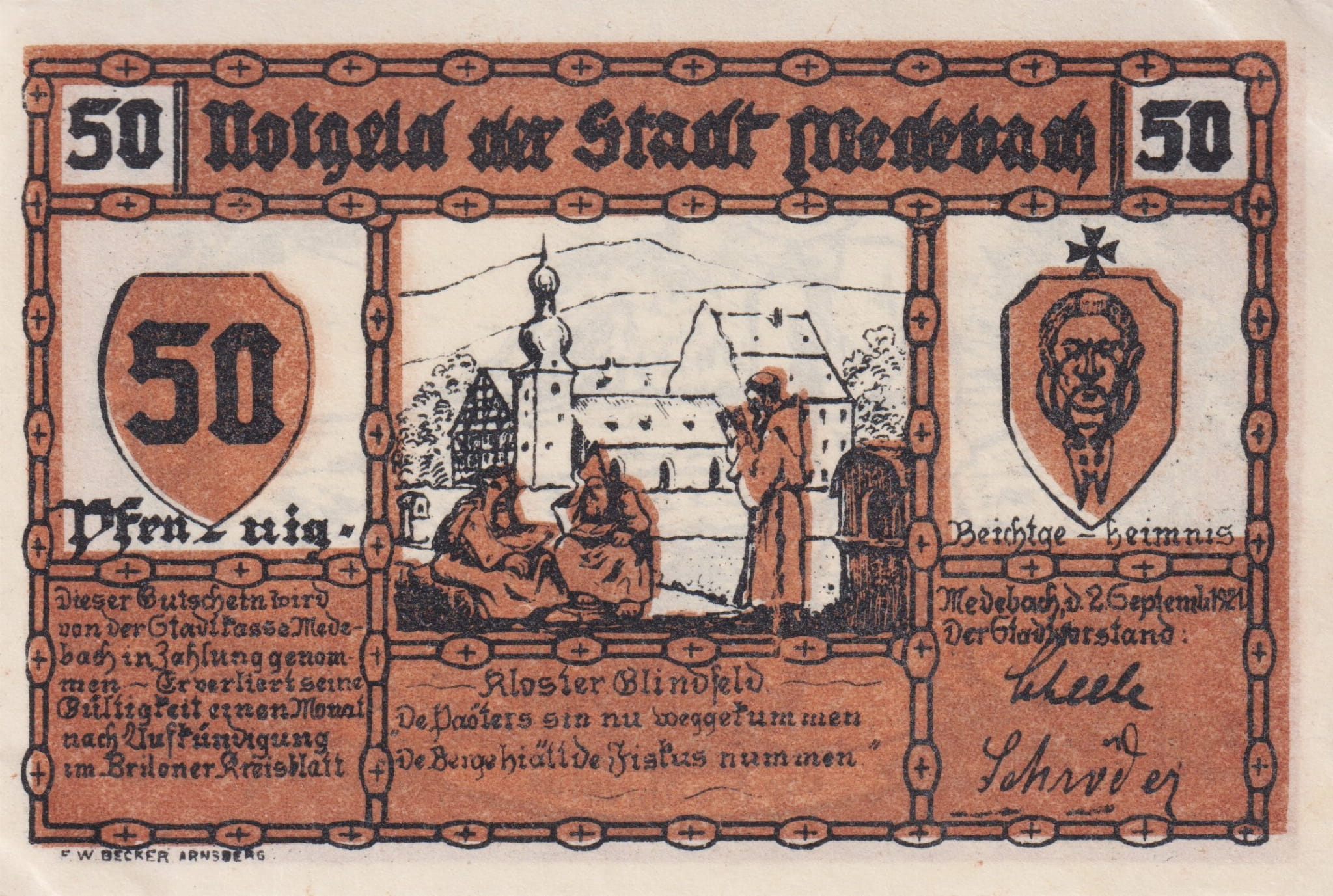 Medebach 50 Pf G-875.1 2.9.1921 AU/UNC