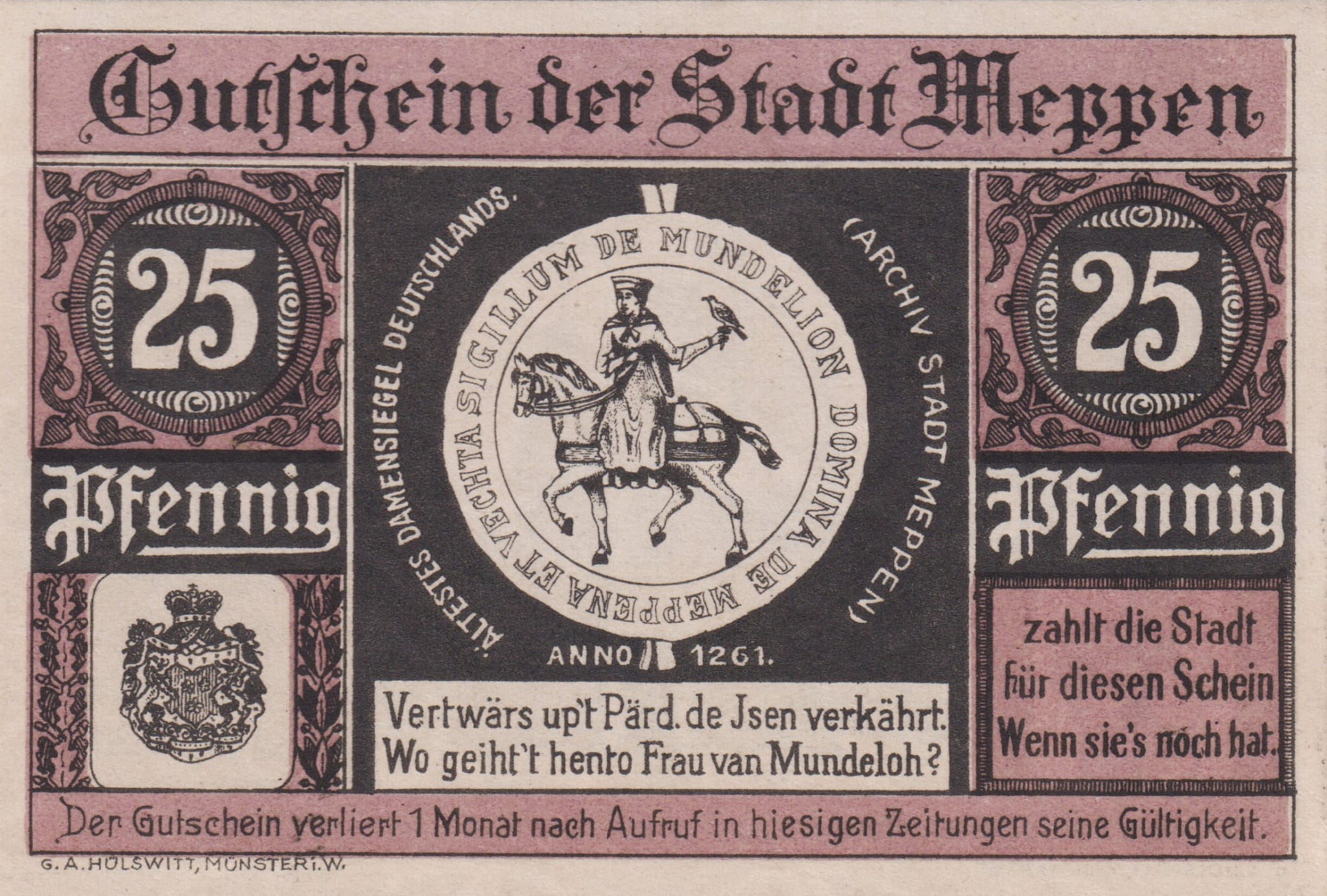 Meppen 25 Pf G-883 31.1.1921 AU/UNC