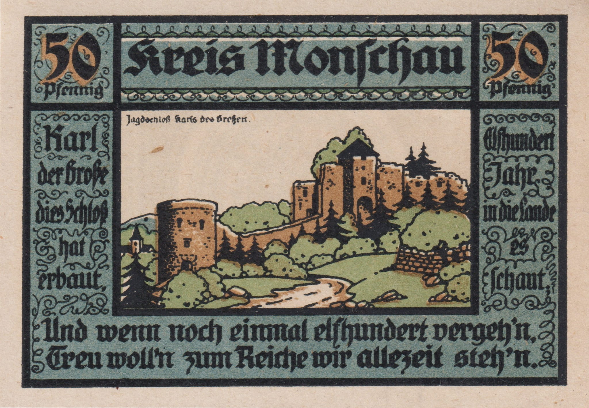 Monschau 50 Pf G-896.1.2 10.1921 aUNC Jagdschloss