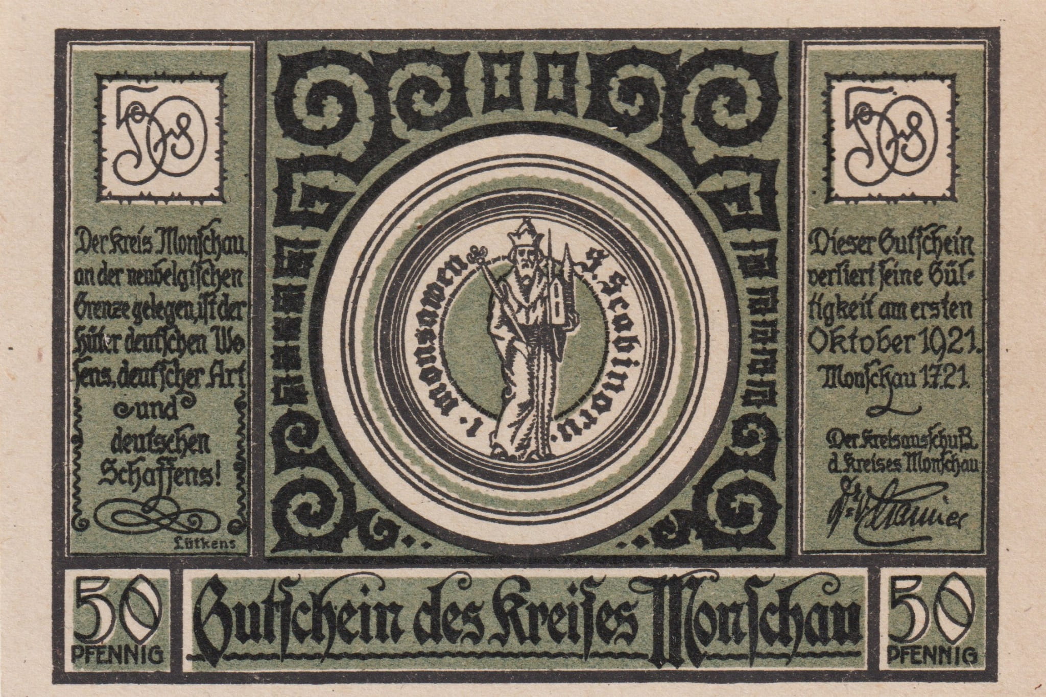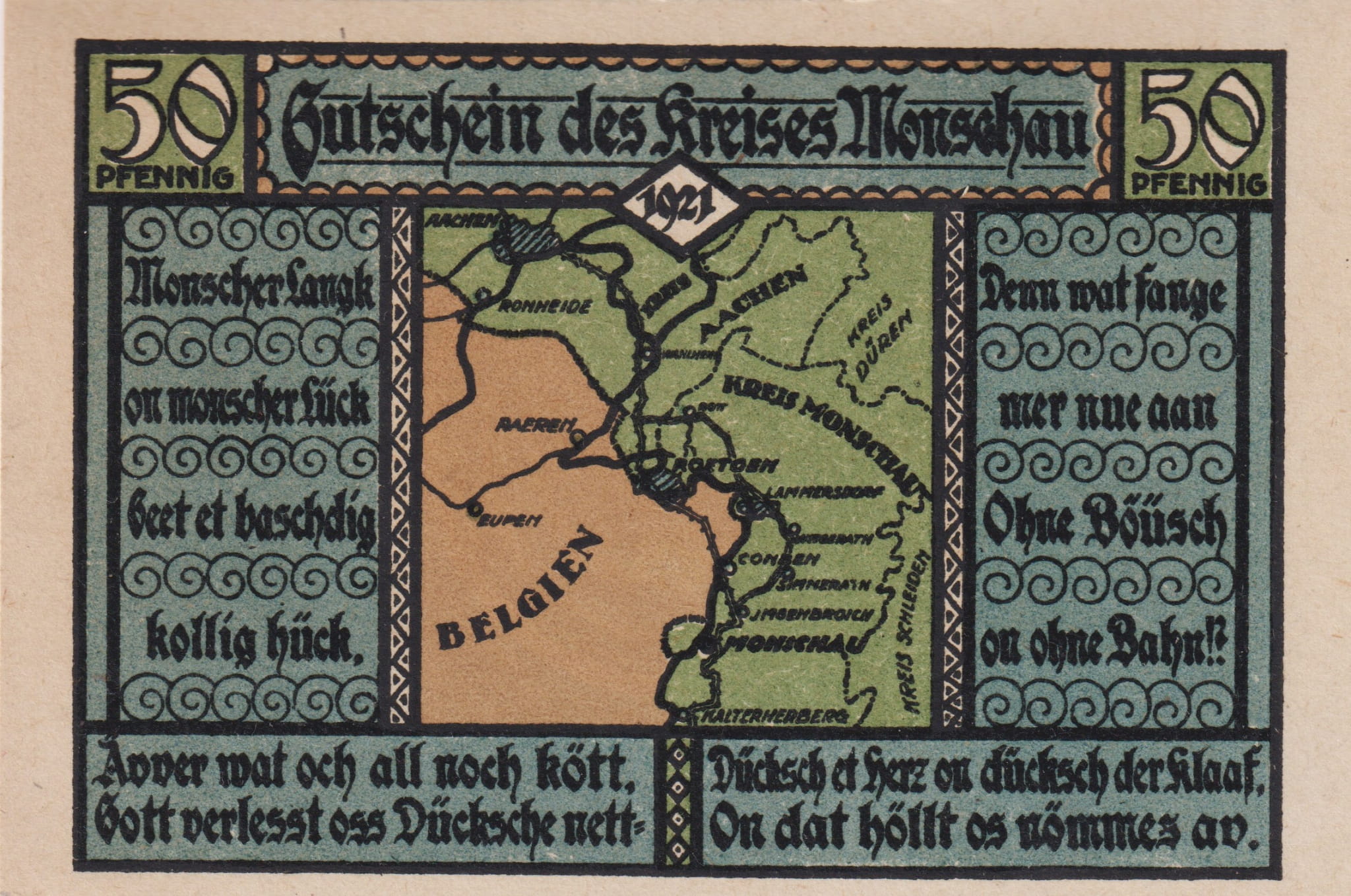 Monschau 50 Pf G-896.1.3 10.1921 aUNC Landkarte