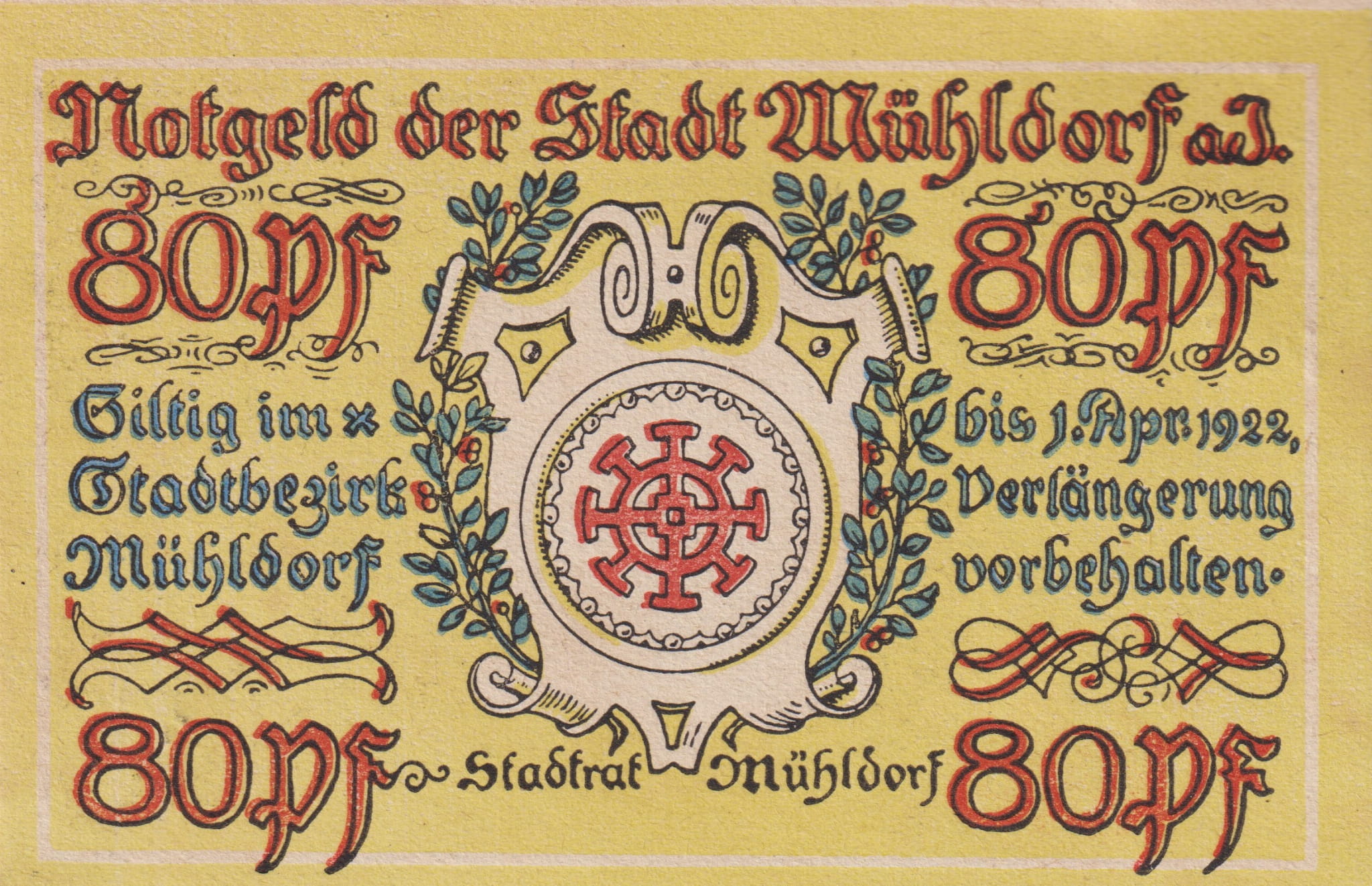 Muhldorf 80 Pf G-904.1 1.4.1922 AU/UNC