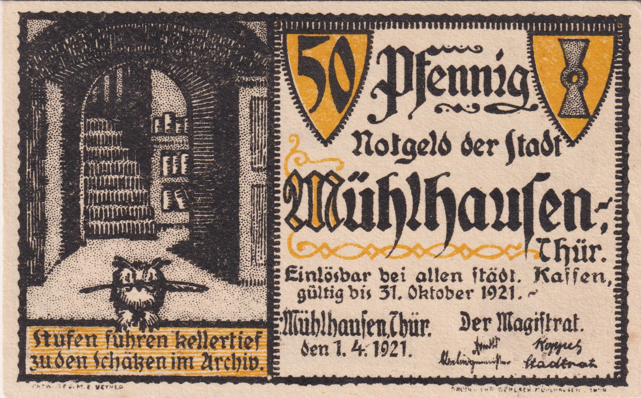 Muhlhausen 50 Pf G-905.1 1.4.1921 AU/UNC 3