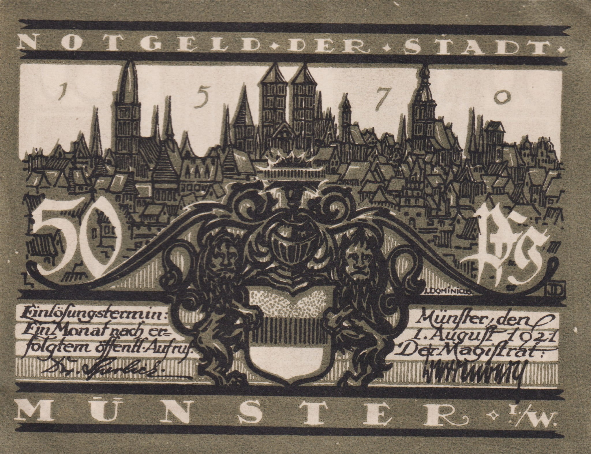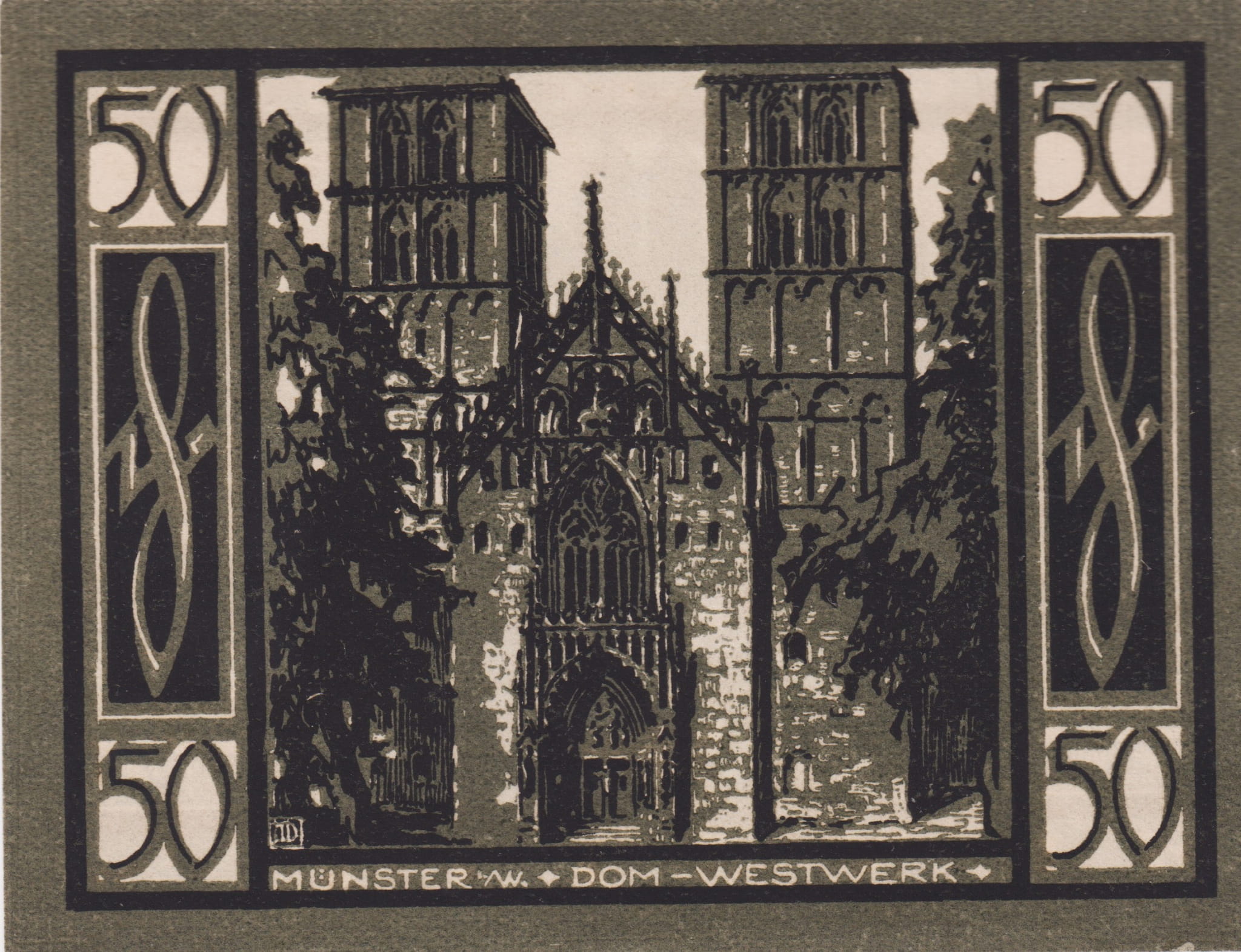 Munster 50 Pf G-916.1.3 1.8.1921 aUNC Dom-Westwerk