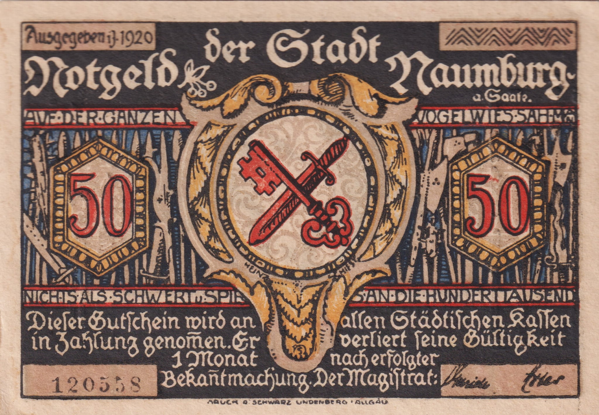 Naumburg 50 Pf G-928.3 1920 AU/UNC
