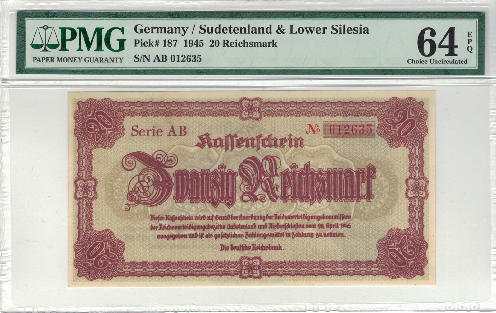 Niemcy 20 Reichsmark P-187 1945 Stan PMG 64