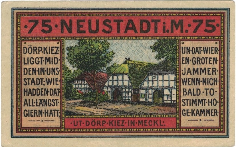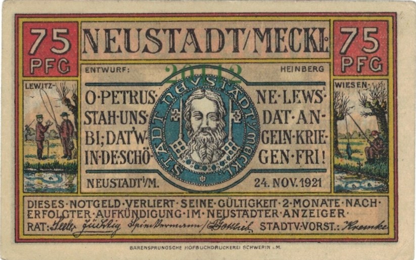 Nustadt Meckl 75 Pf 24.11.1921 UNC-