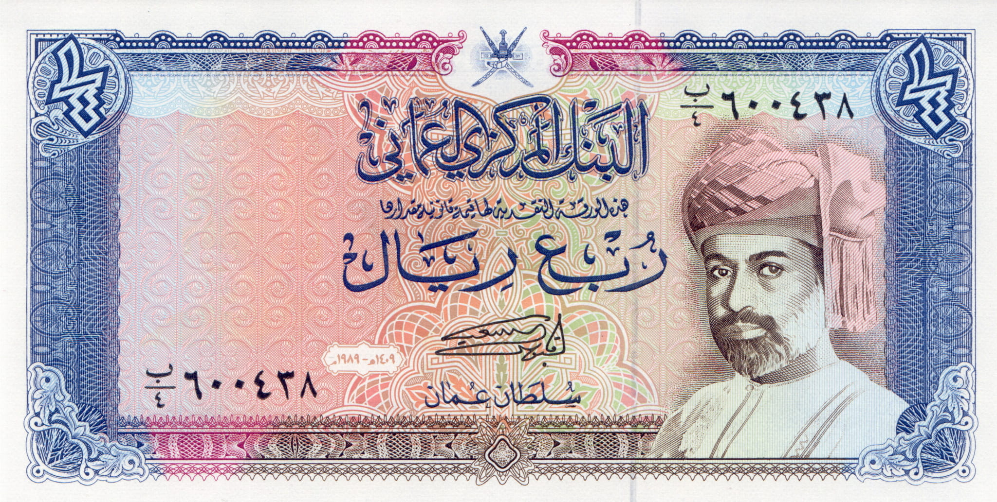 Oman 1/4 Rial P-24 1989 UNC