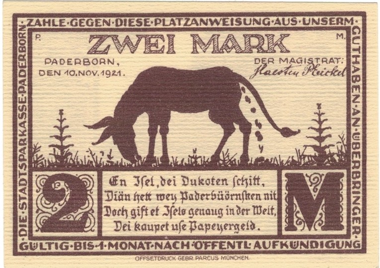 Paderborn 2 M G-1043 10.11.1921 UNC
