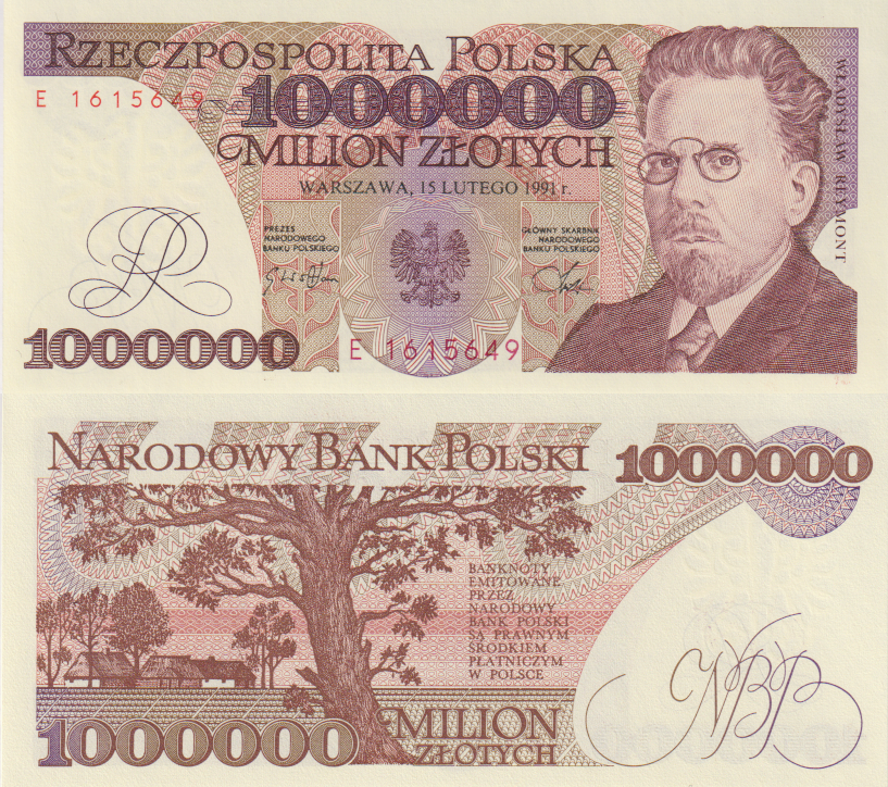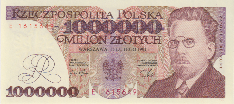 Polska 1 000 000 złotych P-157 1991 stan I UNC
