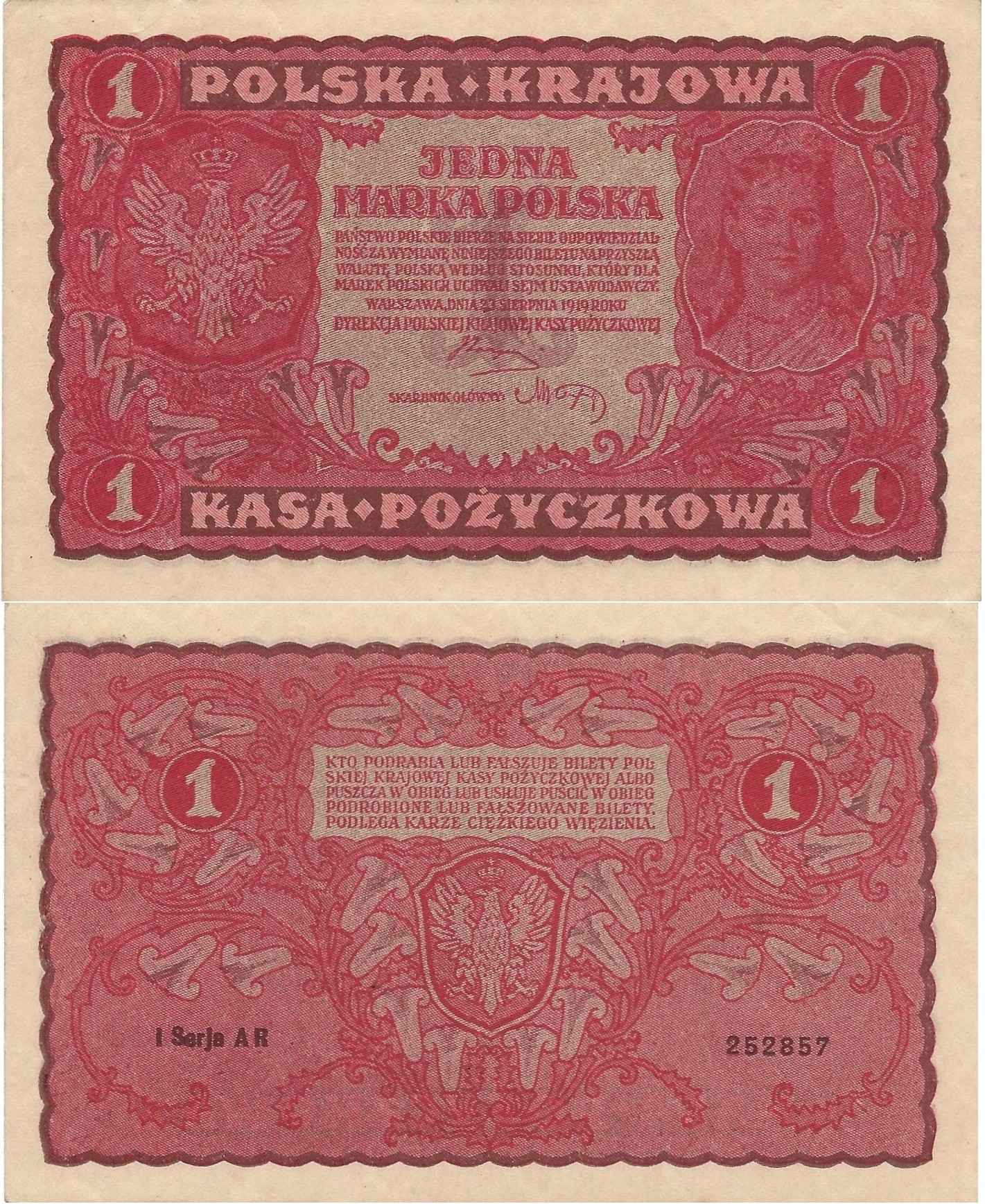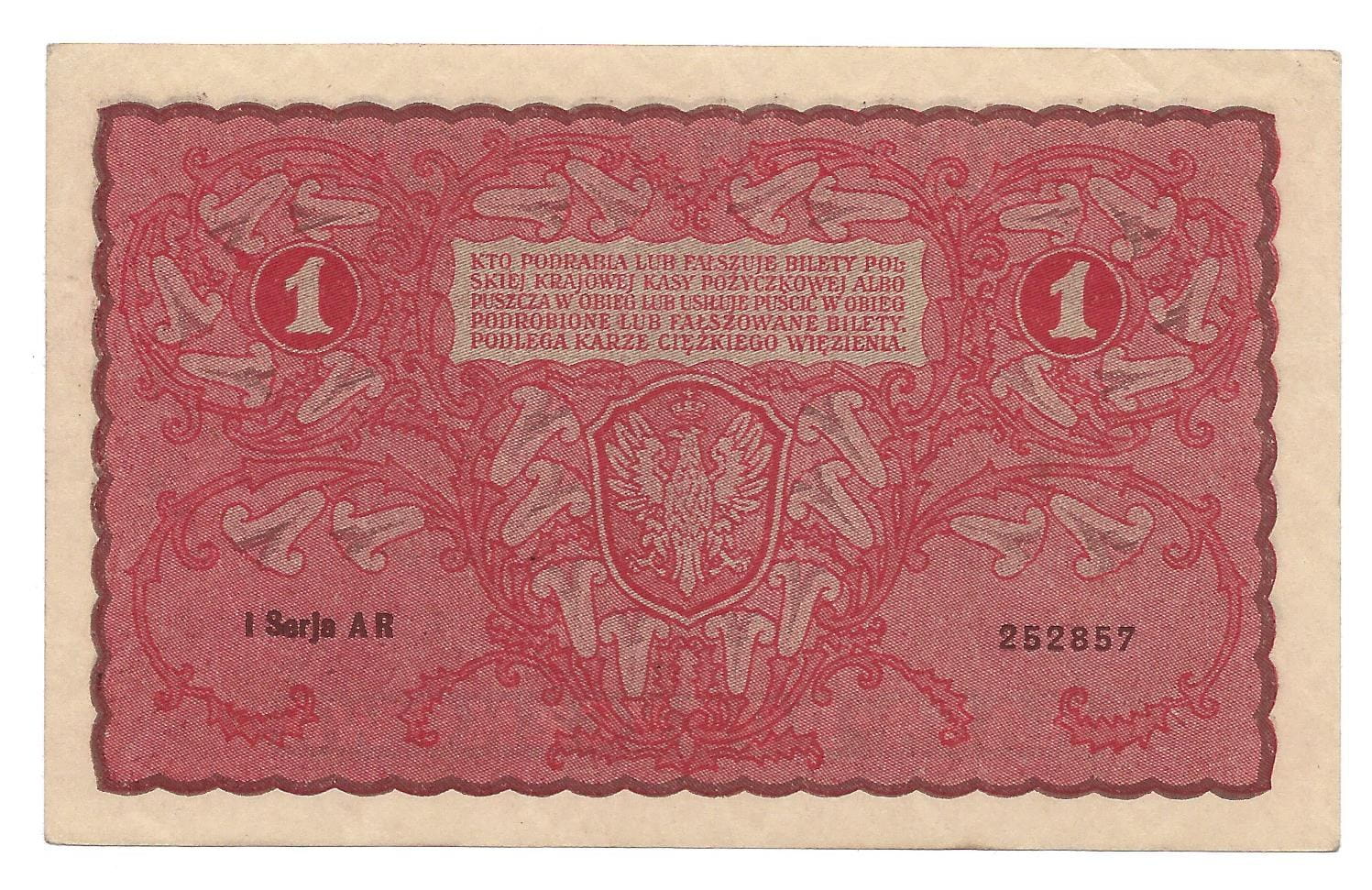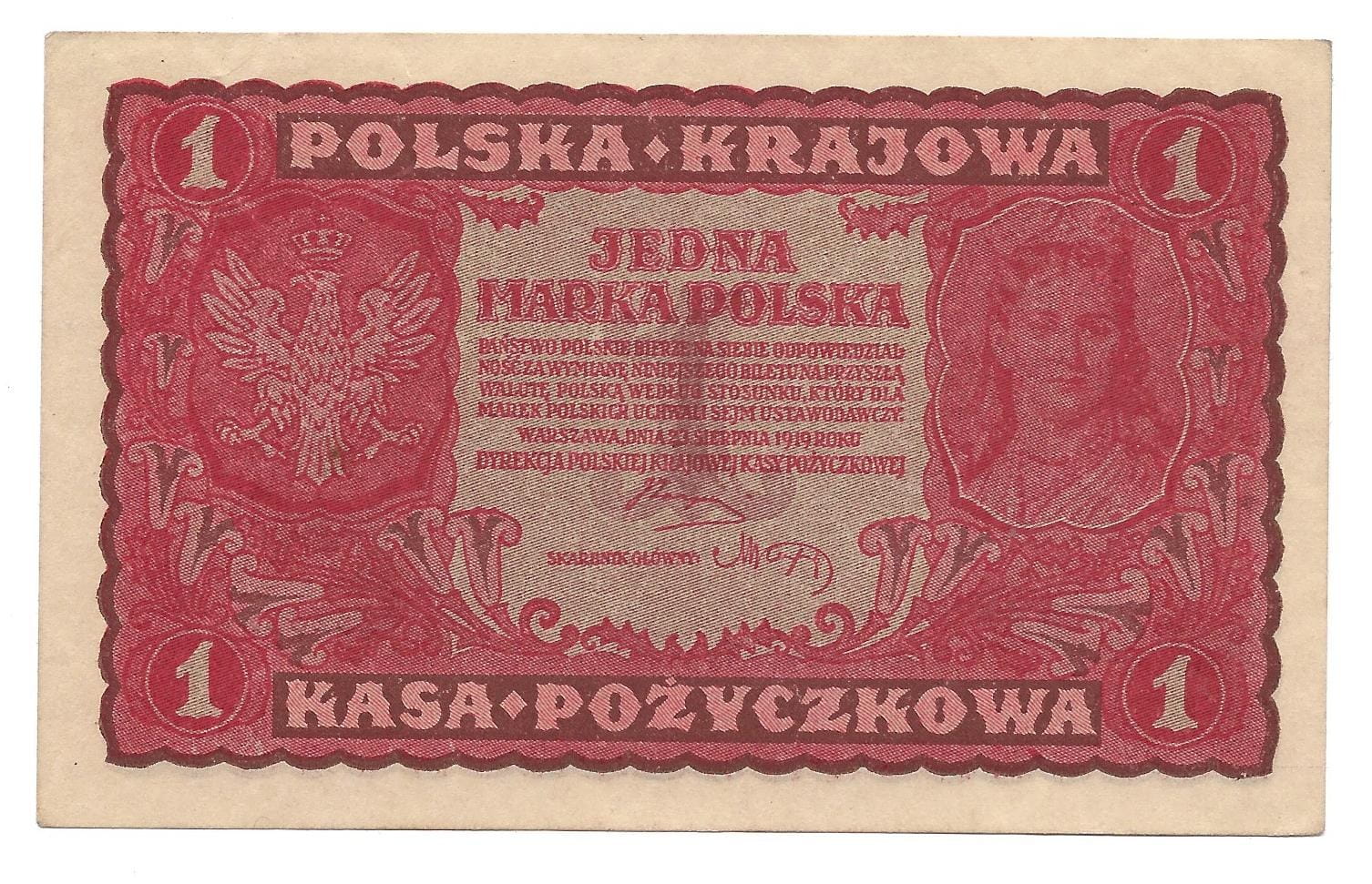 Poland 1 marka P-23 1919 - I Serja AR aUNC