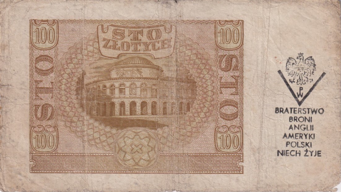 Powstanie Warszawskie 1944 - 100 złotych 1940 seria C z nadrukiem BRATERSTWO BRONI Lucow 985 R4