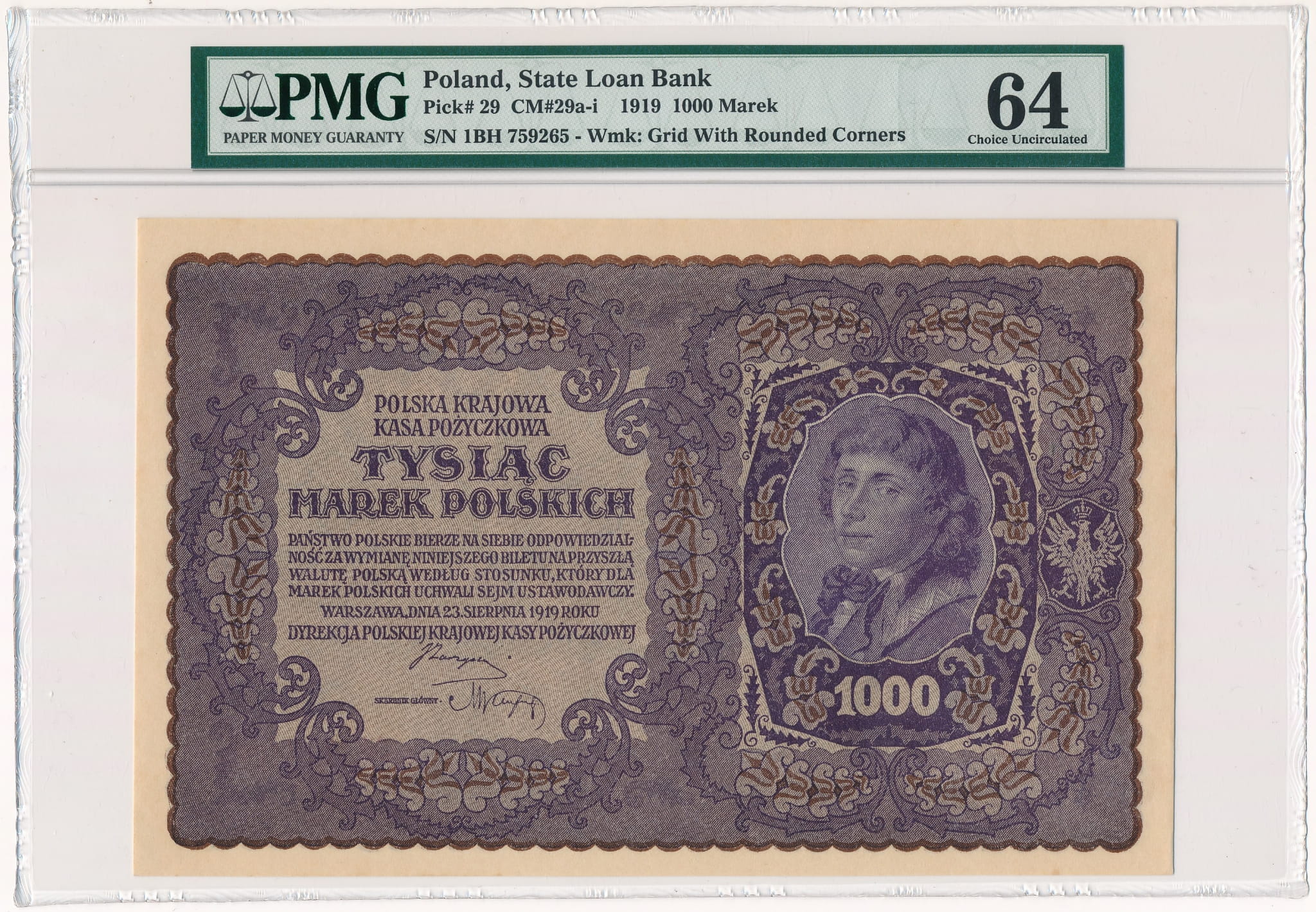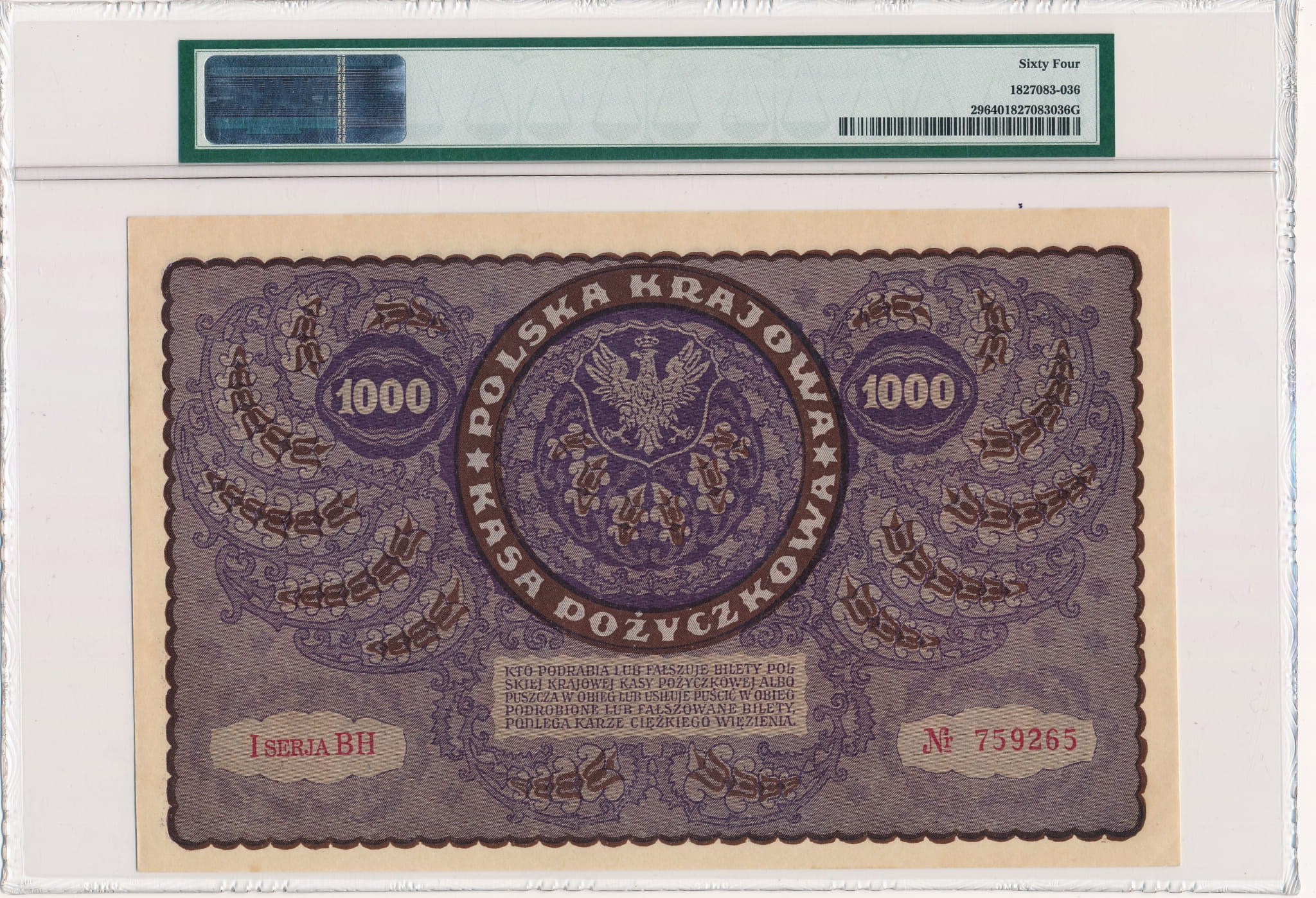 Polska 1000 marek P-29 1919 - I Serja BH PMG 64