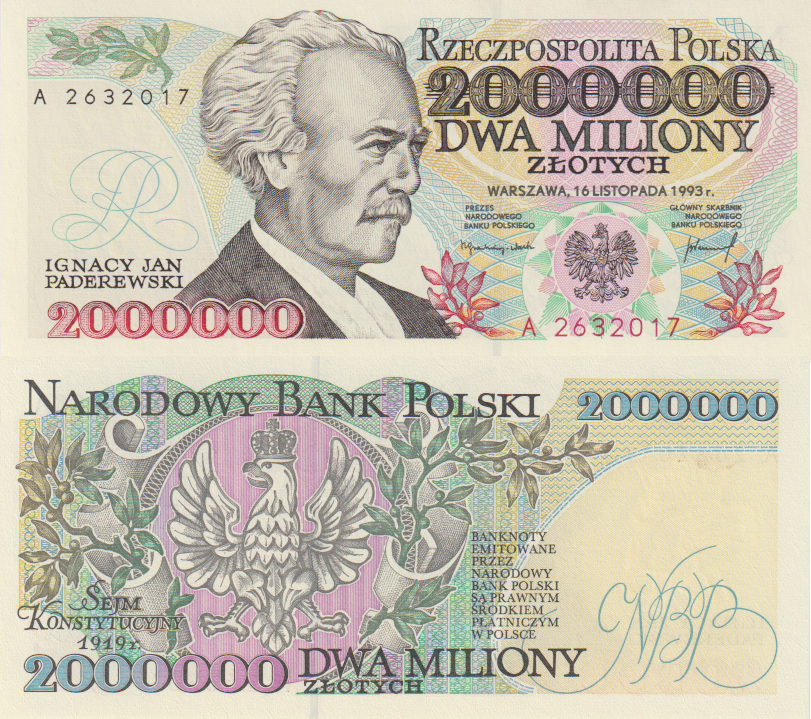 Polska 2 000 000 złotych P-163 1993 Stan I UNC A