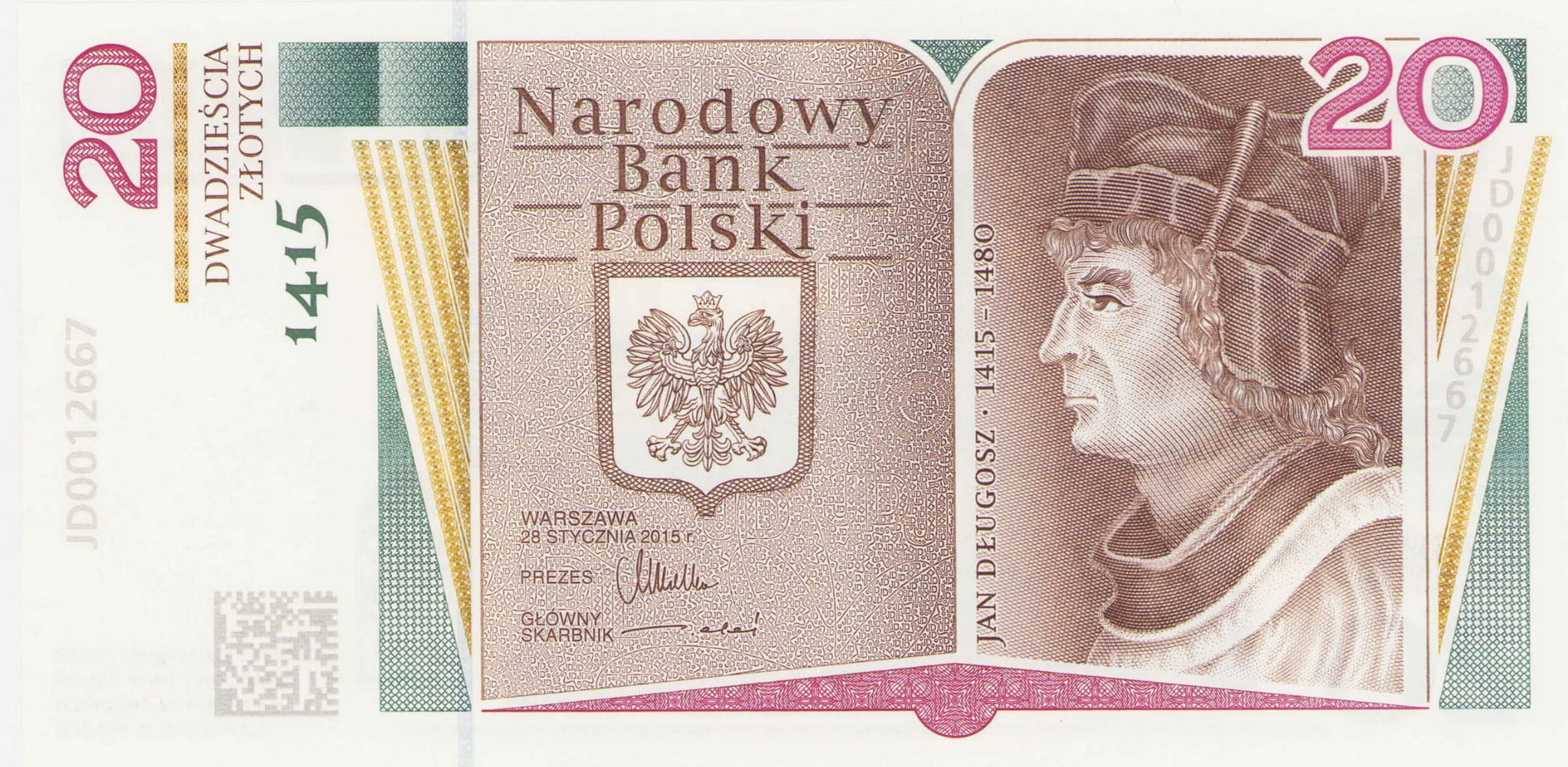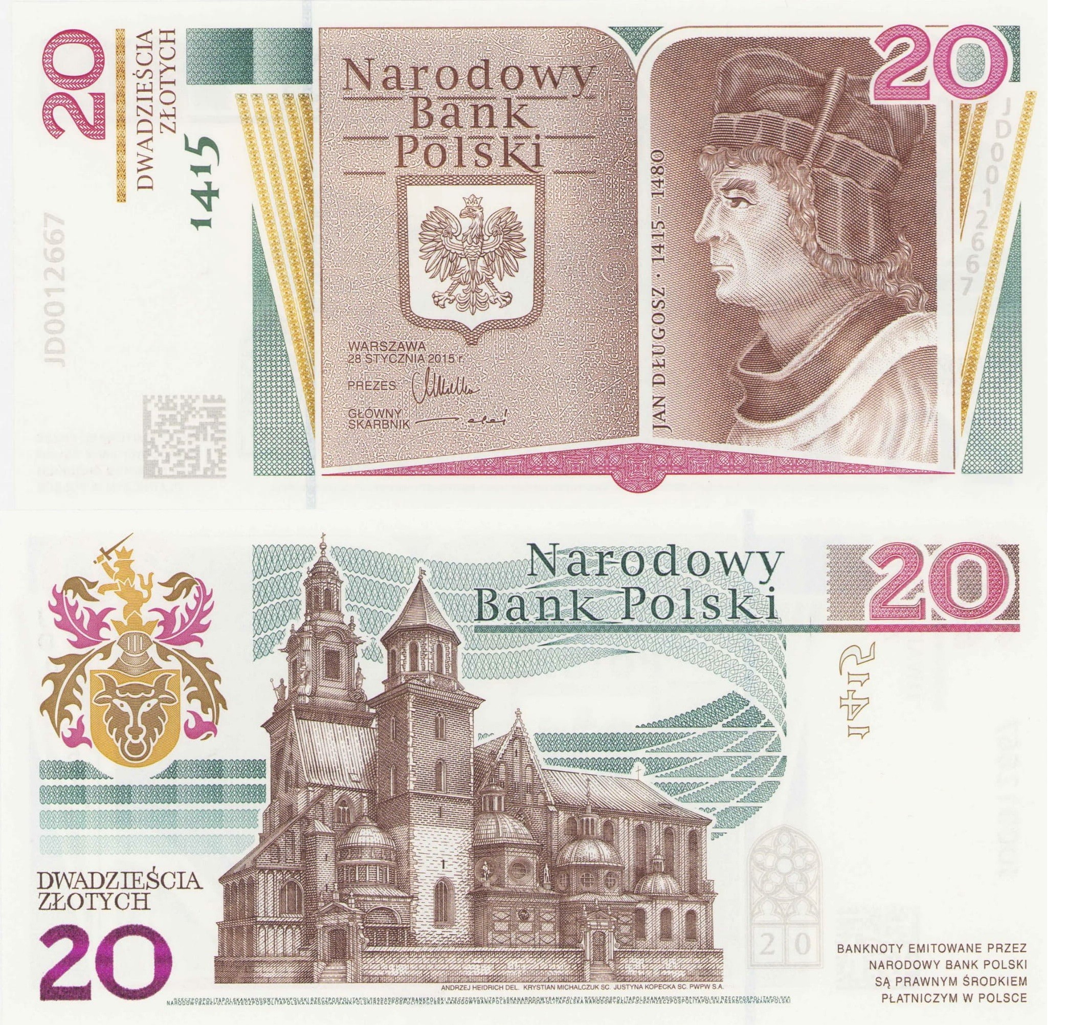 Polska 20 Złotych P-188 2015 UNC