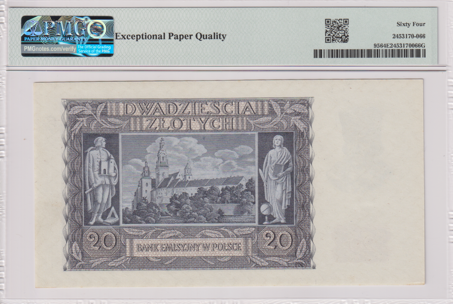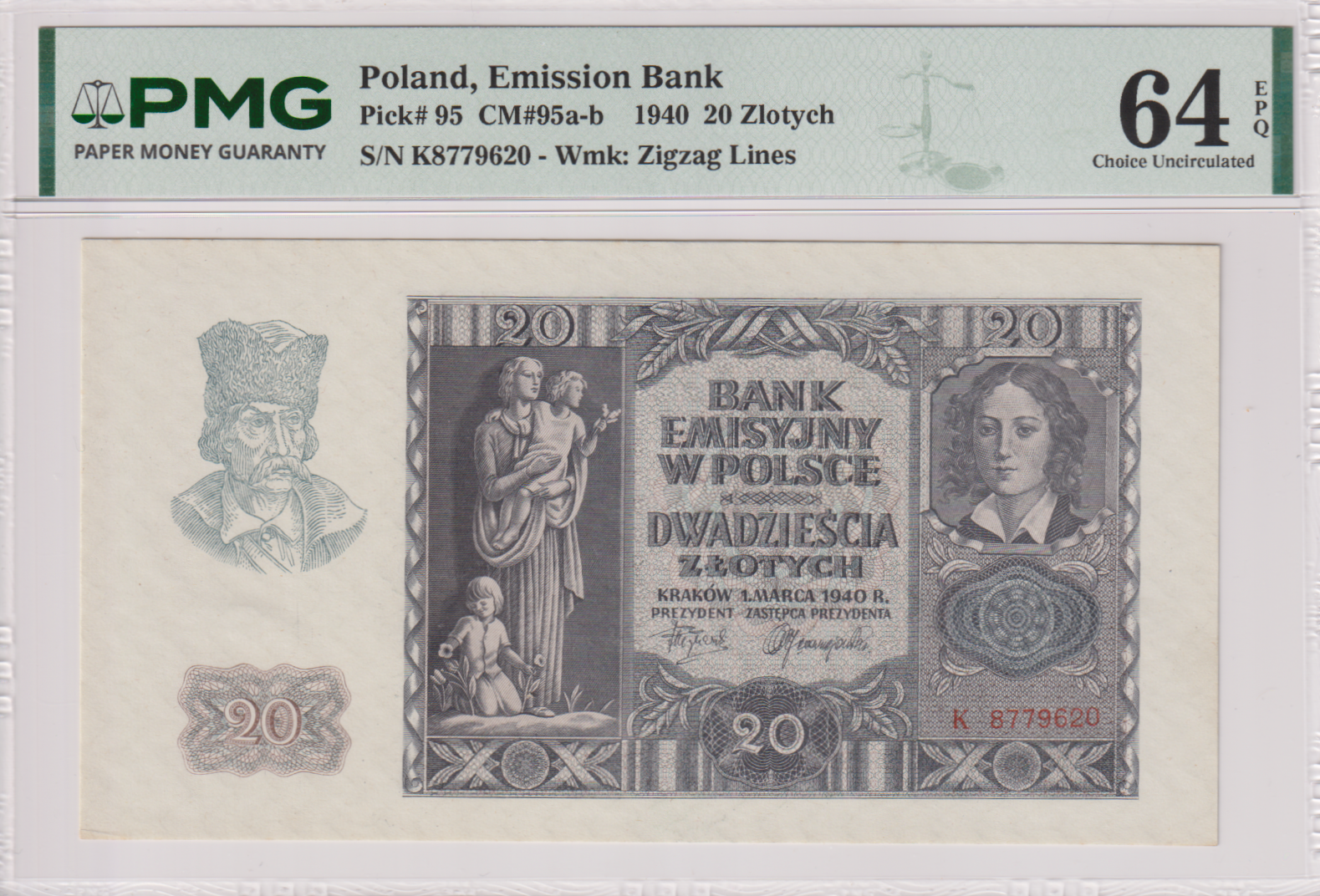 Polska 20 Złotych P-95 CM-95 1940 PMG 64 EPQ
