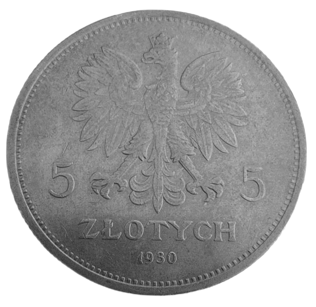 Polska 5 złotych Sztandar 1930 KM-19 Stan 1/-1 aUNC