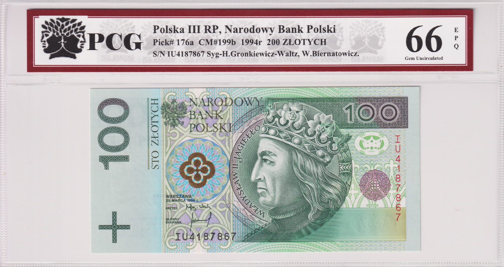 Polska III RP 100 Złotych CM-199b P-176a 1994 PCG 66